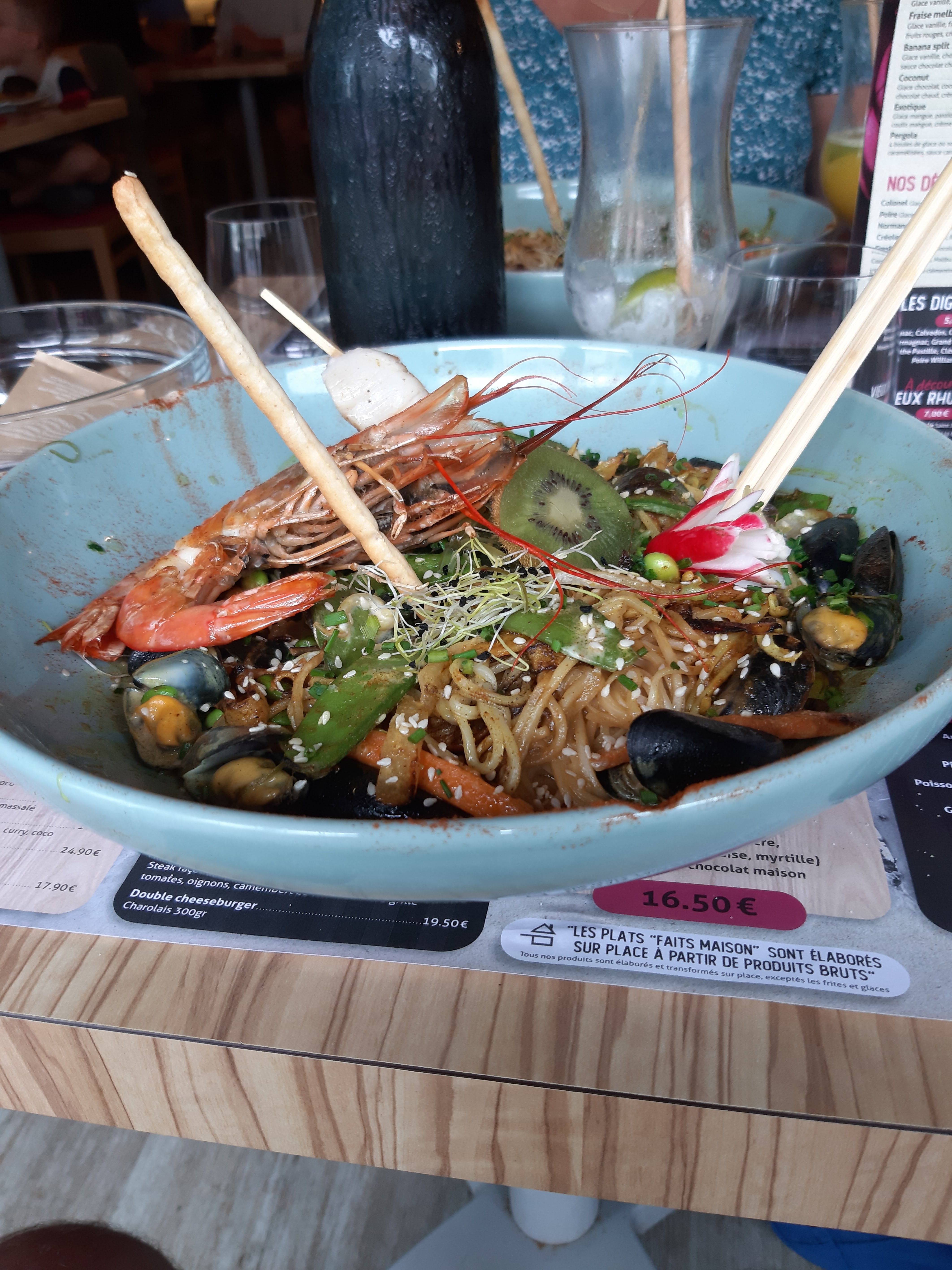 Plats originaux (woks de la mer, de la criée...) Très copieux Personnel très sympa Je recommande vivement