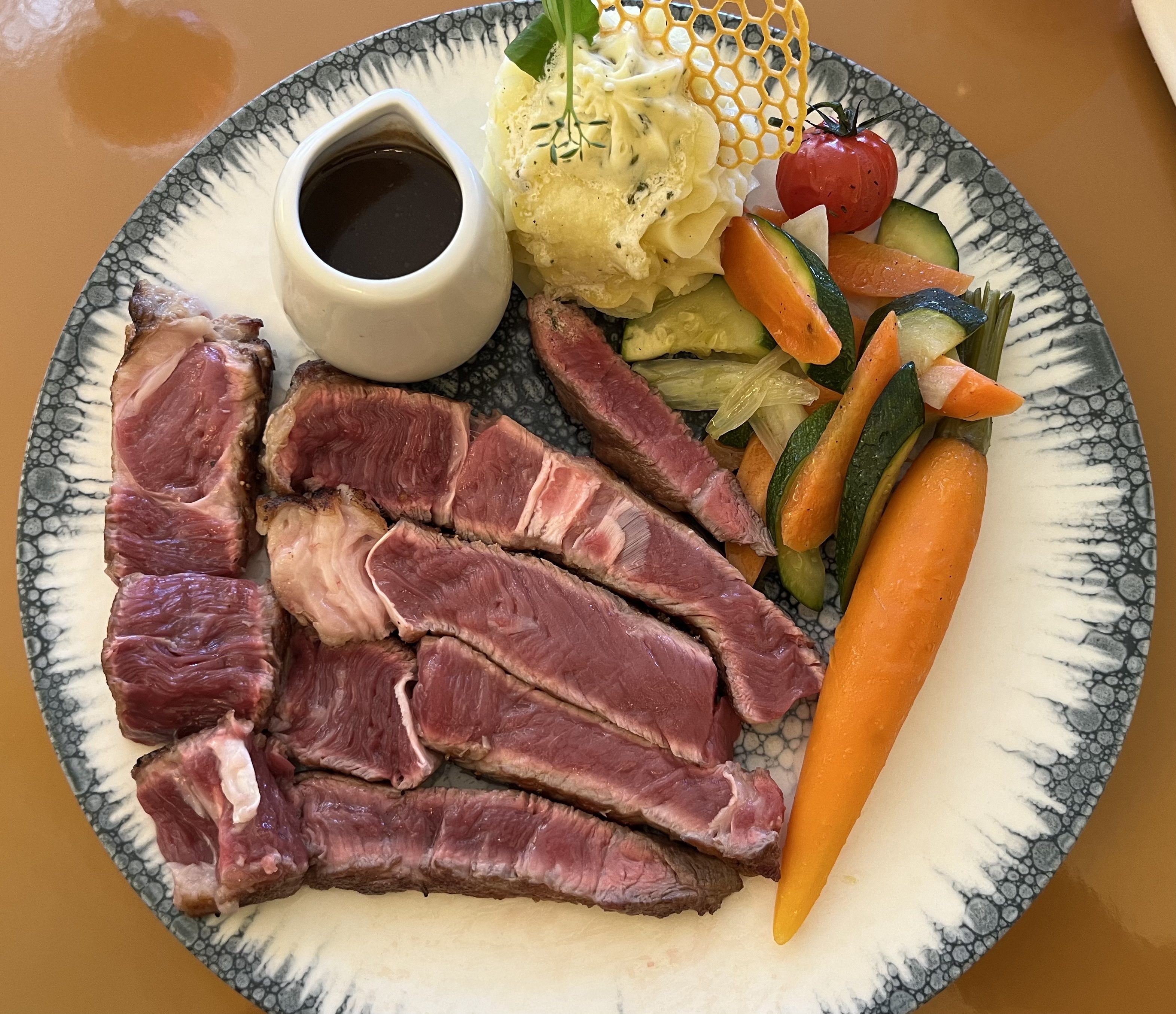 Excellent ! Très bonne adresse. Service impeccable. Repas degusté au soir, le lieu est magnifique. Menu (48 €) ou à la carte. Entrée et plat vegetarien disponible. On recommande vivement !!