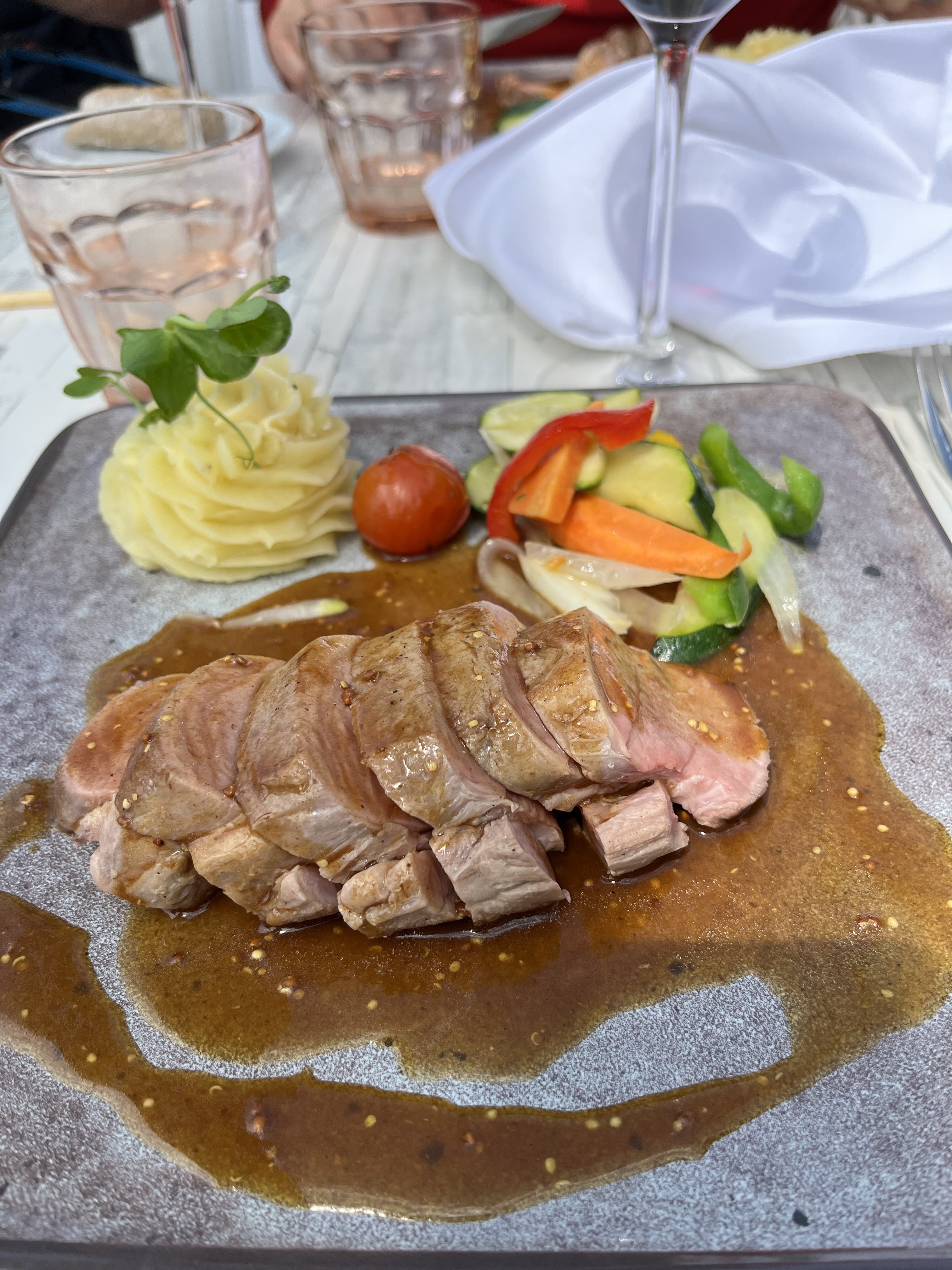 Restaurant au top et surtout au calme ! On entend que les poissons dans l’eau et les canards, vraiment un moment de détente 👌🏽