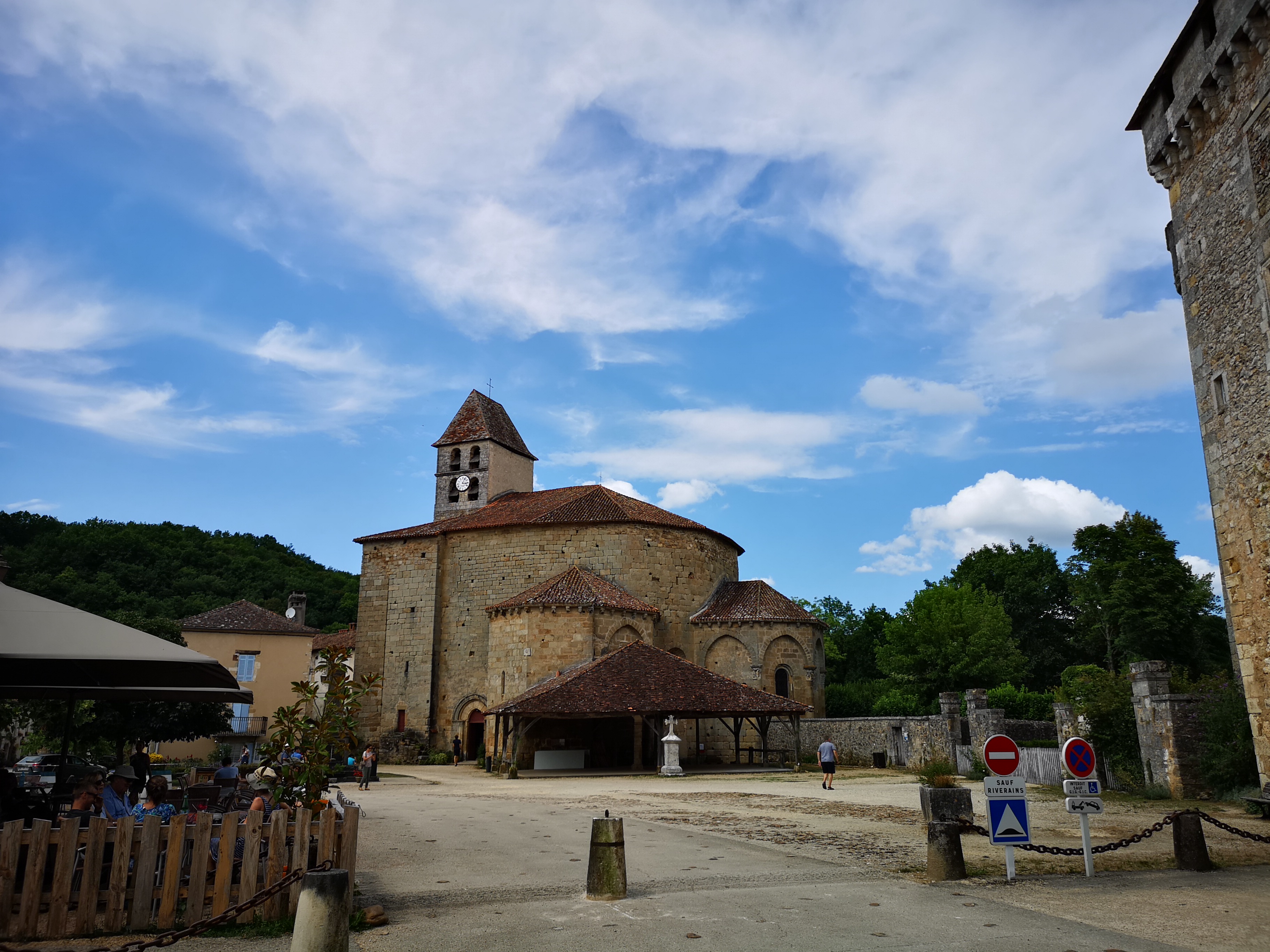 Un endroit en terasse sur la place du village face au château et l'église, un régal pour les yeux, une glace artisanale de Vaunac un delice