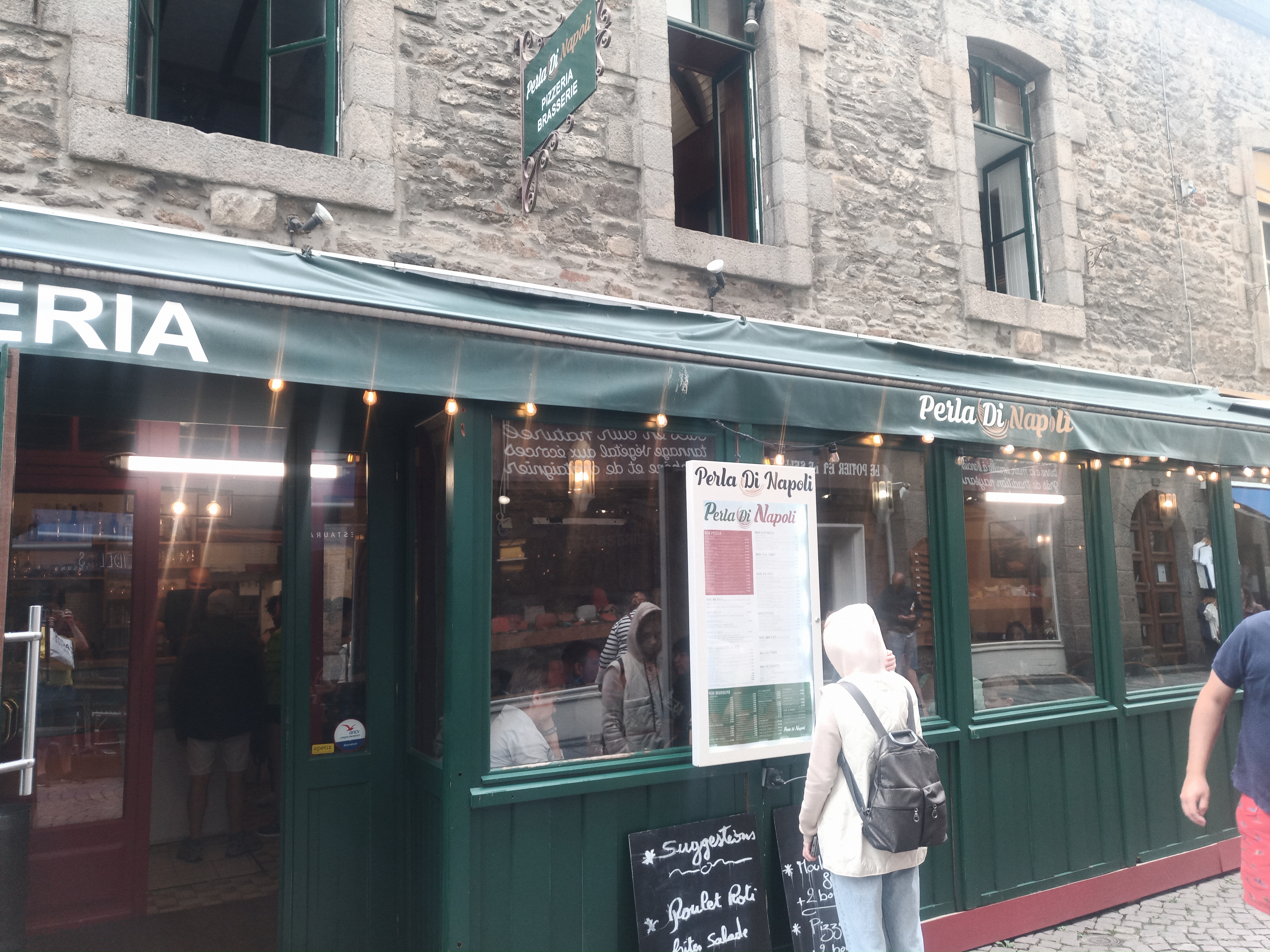 Une catastrophe, nous y sommes allez avec deux enfants, la serveuse nous a installé en terrasse couvertes sans chauffage (13°) pour faire comme si il y avais du monde dans le restaurant, les pattes des enfants fades et toutes collés avec des nuggets bien dur, quand à nous la pieces du boucher était bien dure. Bref pas à la hauteur des restaurant Intra muros.