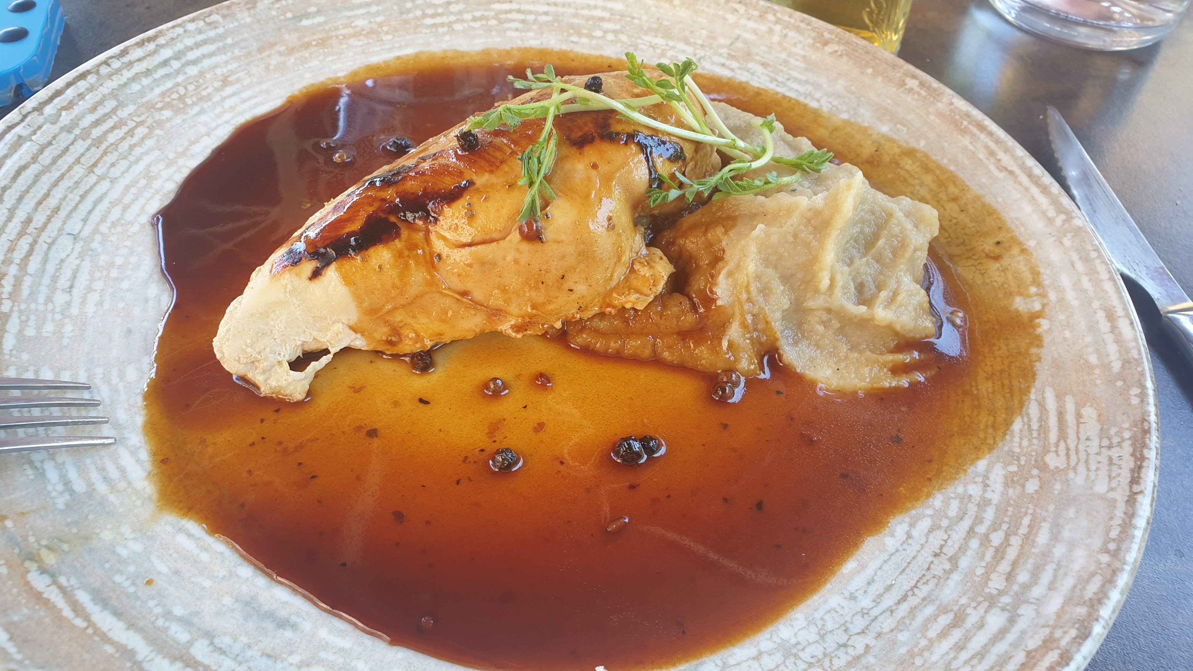 Plat principal.. Très moyen.. Bon vin rosé