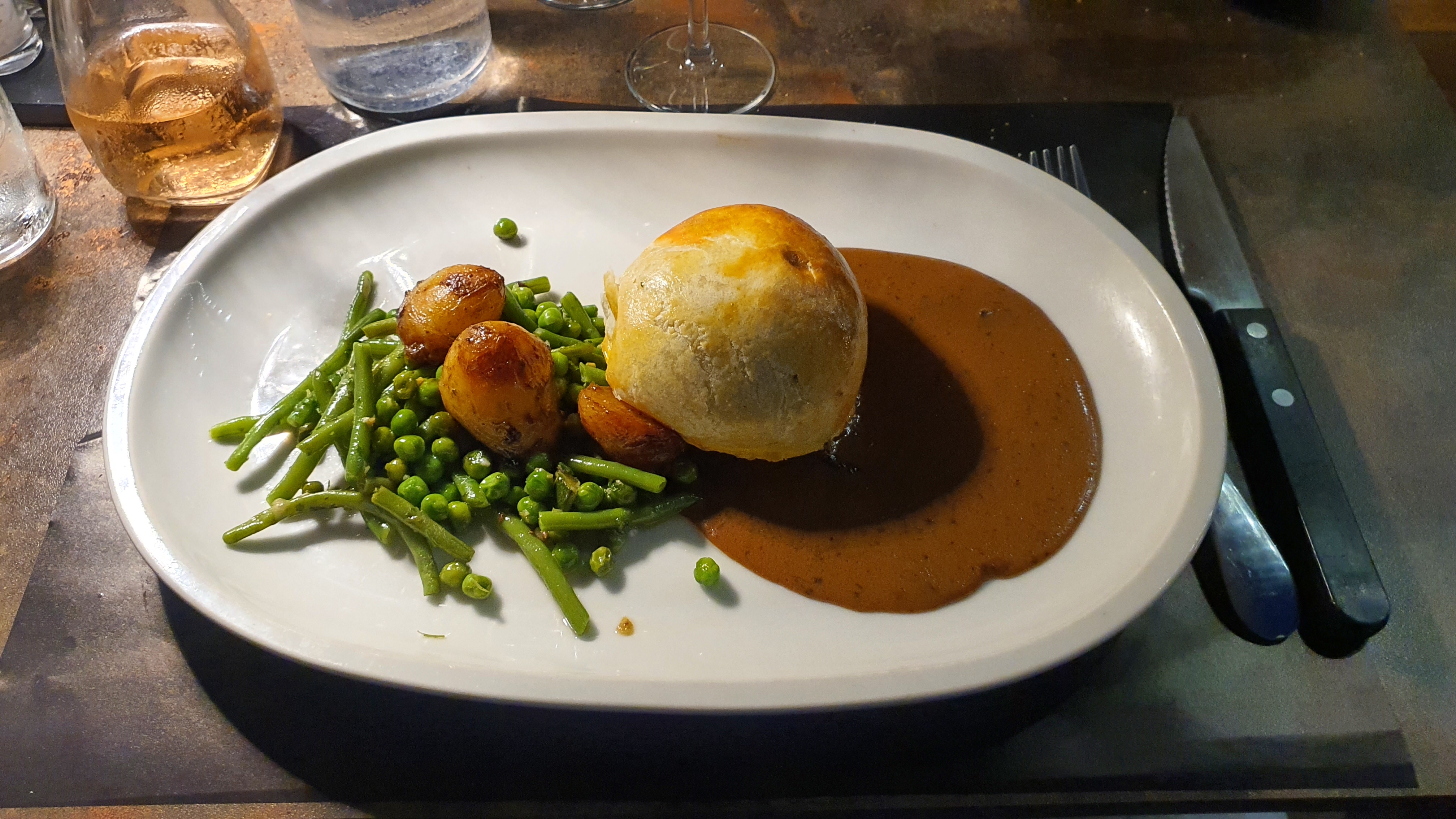 Restaurant classique et moyen. Nous avons pris l'onglet à l'échalote et une pizza vegetarienne. C'était bof et l'aération dans le restaurant n'est pas bonne. Nos affaires sentaient fort...