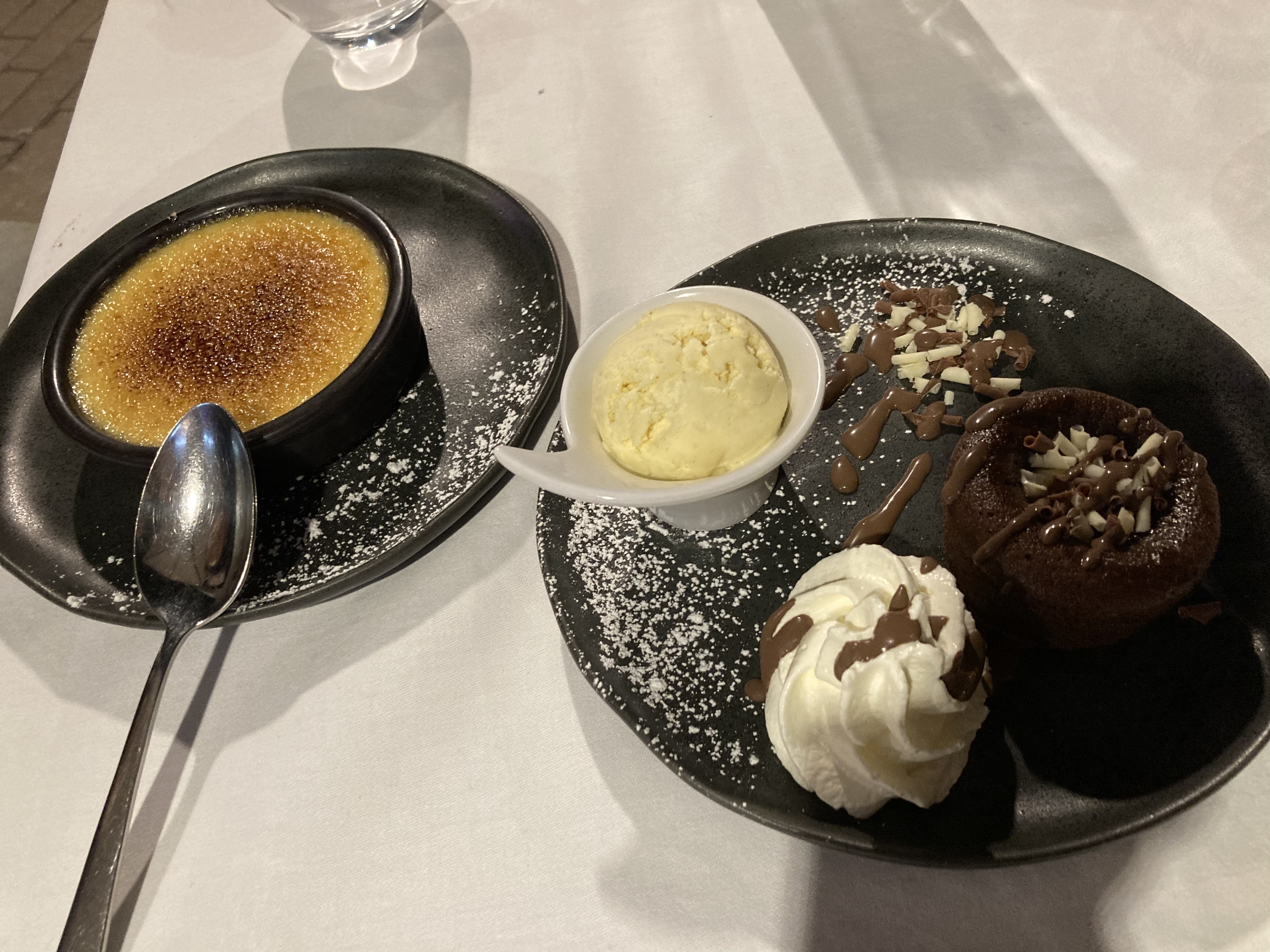 En visite à Cannes le week-end dernier, c'était un restaurant que mon partenaire et moi avons repéré plus tôt dans la journée. Je voulais essayer les huîtres pour la première fois et nous avons décidé de revenir plus tard pour le dîner, lors de notre dernière nuit. Le restaurant n'a pas déçu ! Service fantastique du début à la fin. L'équipe était hospitalière, sympathique et attentionnée. La nourriture était superbe ! J'ai pu déguster pour la première fois des huîtres qui étaient délicieuses, accompagnées de champagne. J'avais du bar et mon partenaire avait de l'espadon, tous deux cuits à la perfection. Le poisson et les sauces se complétaient si bien et avaient tellement de saveur ! Les desserts à la crème brûlée et au fondant au chocolat ont bien terminé notre repas. Je recommande fortement de venir ici - vous ne serez pas déçu. Merci à l'équipe !