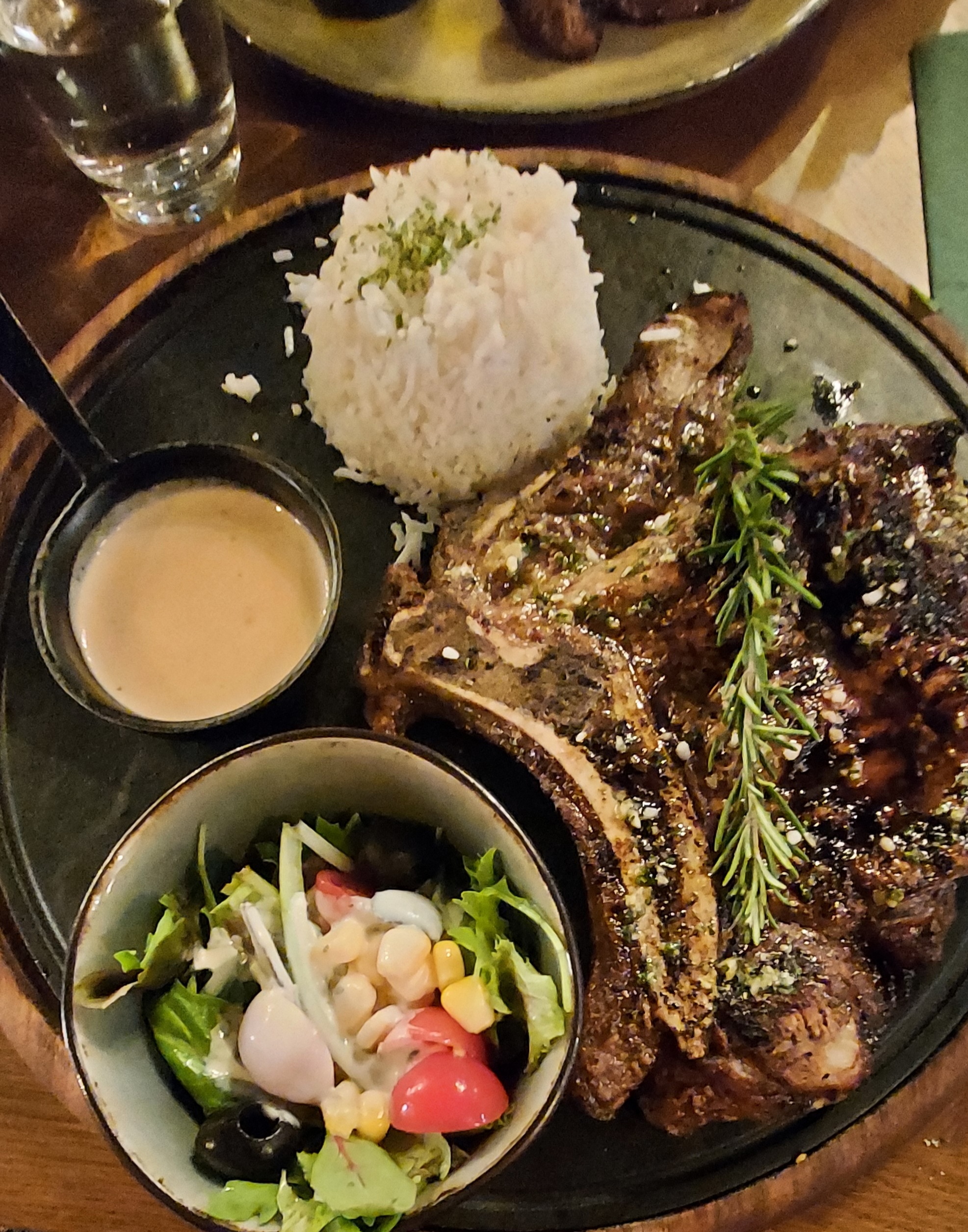 Viande très bonne et fondante avec un bon goût de cuisson au charbon je pense. Juste les quantités qui mériteraient d’être un peu plus généreuse pour le prix ou éventuellement de faire un prix de menu entrée plat dessert. Sinon le personnel est professionnel et aimable. Et le décor sobre et classe. Très bon restaurant. Continuez comme cela et ne relâchez jamais la qualité que vous avez avec le temps 👌 à très bientôt