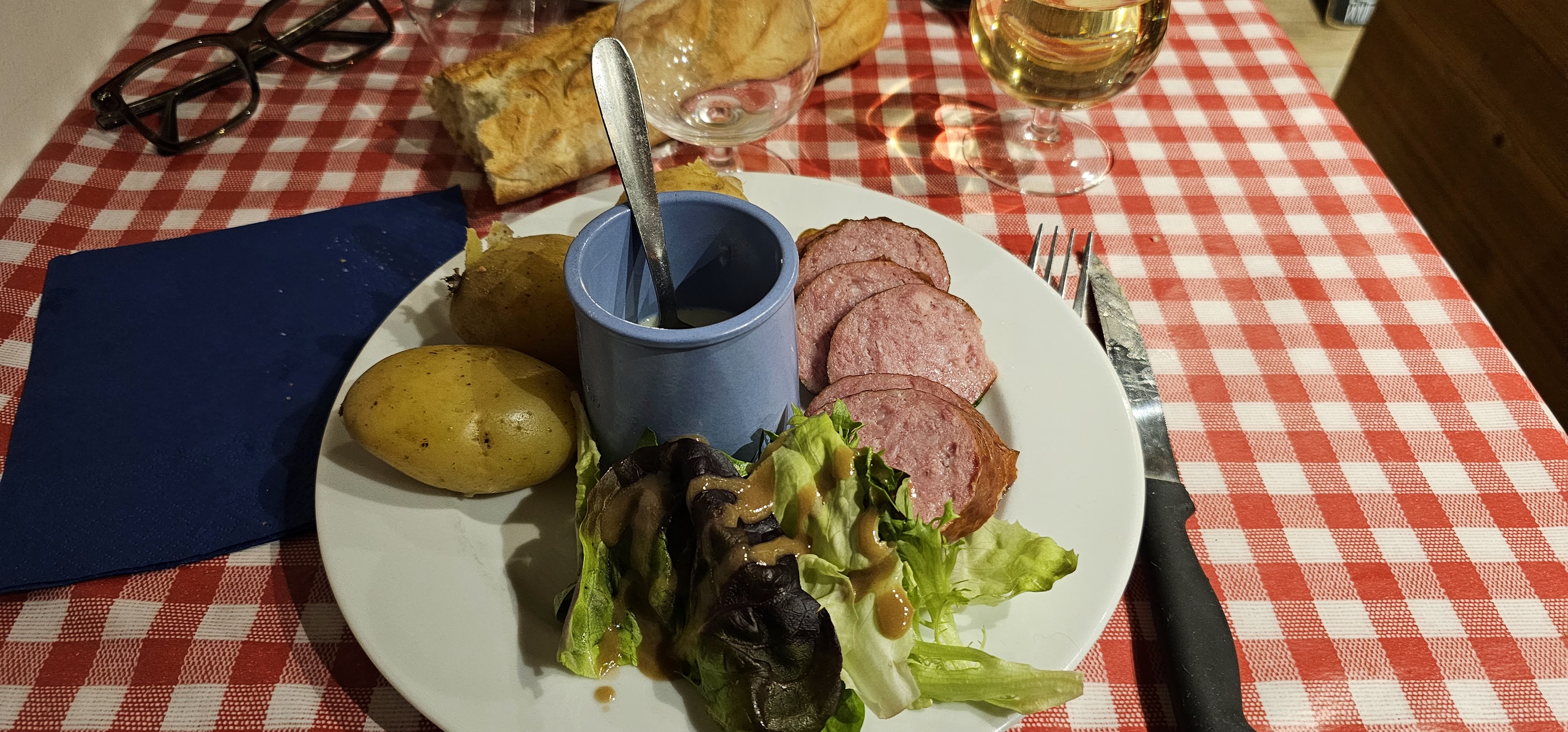 C'est affiché dès le début : formule salade verte terrines puis plats au choix ! Une cuisine franche nette sans chichi ! On aime la franchise et la sympathie de l'accueil ! Mention au mont d'or saucisse de Morteau