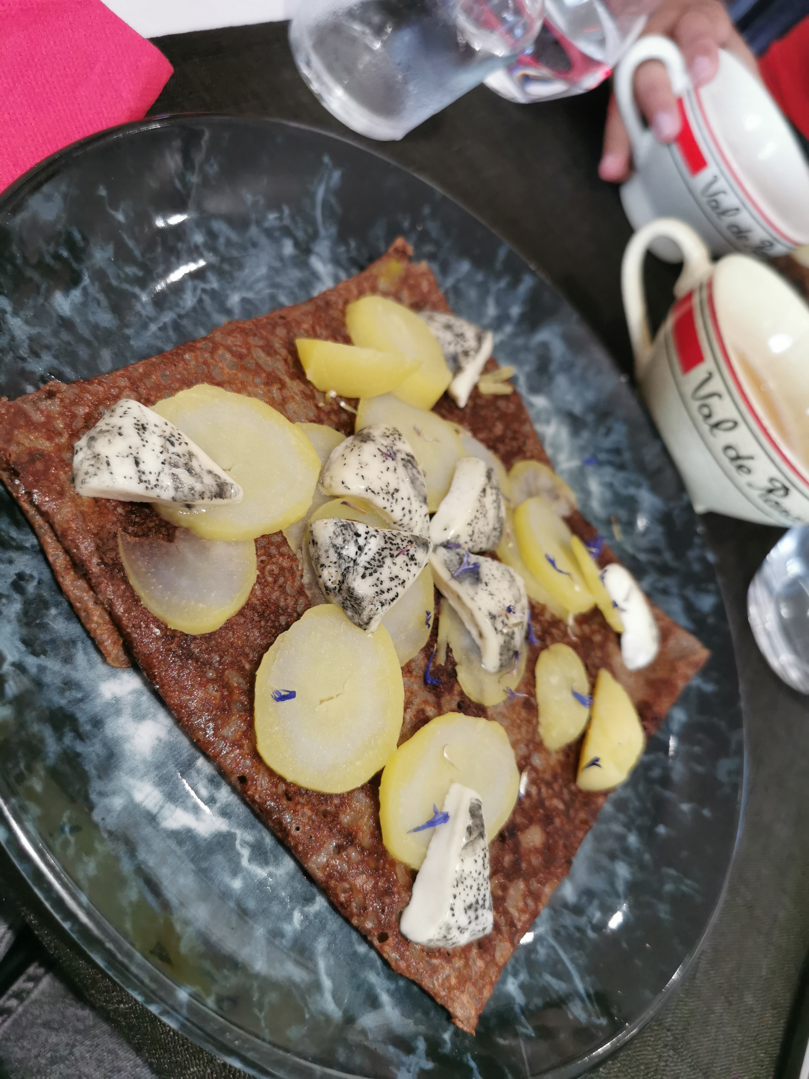 nous y sommes allés en amoureux le dimanche 27 novembre j'ai pris une galette landaise et mon conjoint une galette à l'andouille c'était délicieux l'accueil était très sympathique et le cadre juste superbe