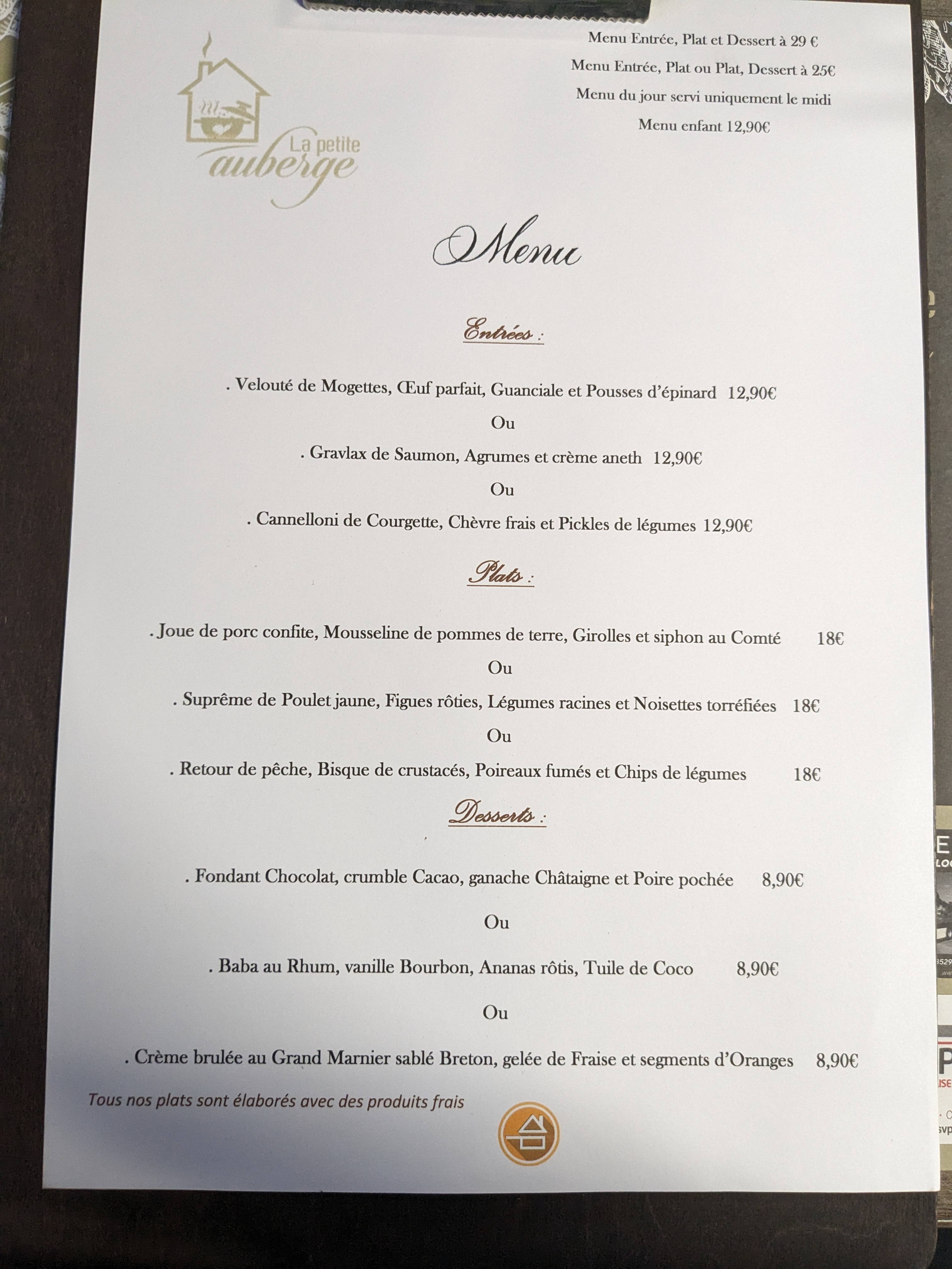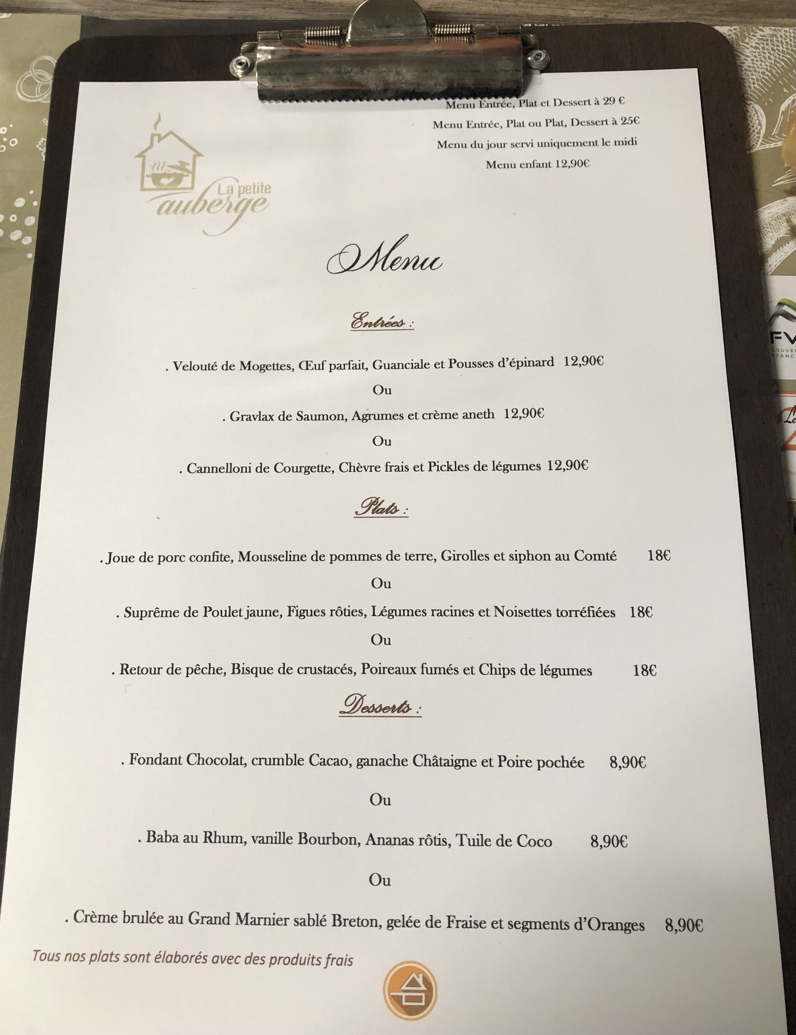Nous avons été très bien accueillis, menus sympas, bien servis. Je conseille vivement cet Auberge 😋🥰