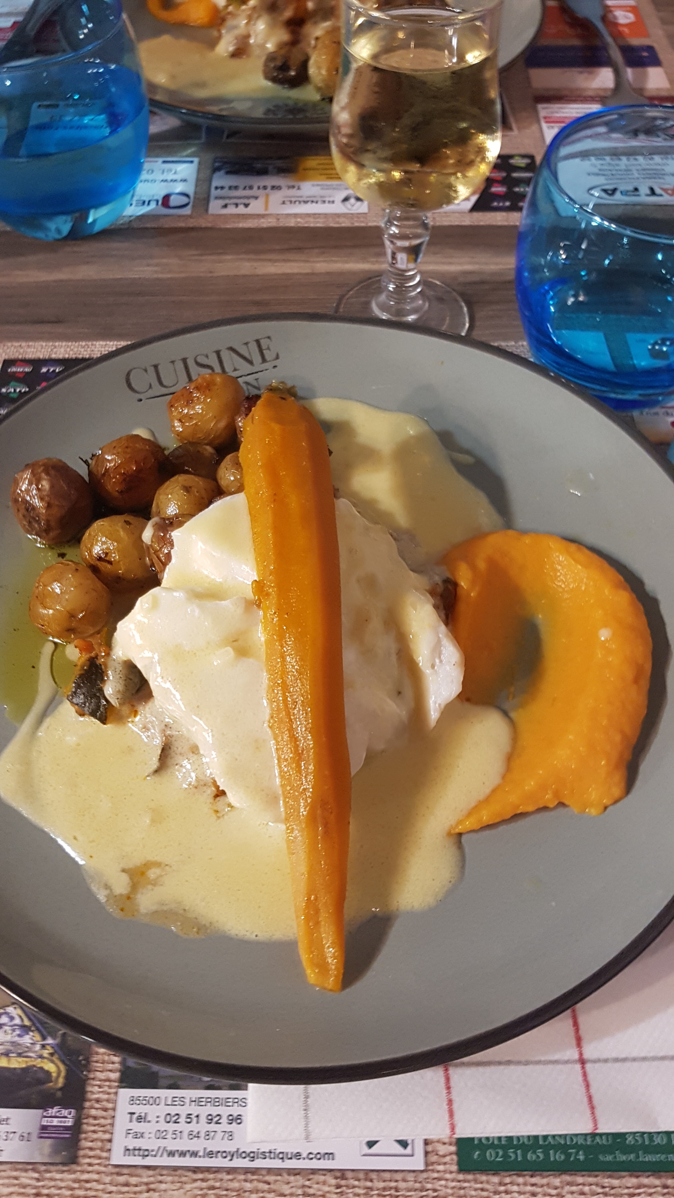 Très bon dîner, tout est excellent de l’entrée au dessert. Le service est impeccable. A faire absolument si vous êtes dans la région du Puy du Fou 😊
