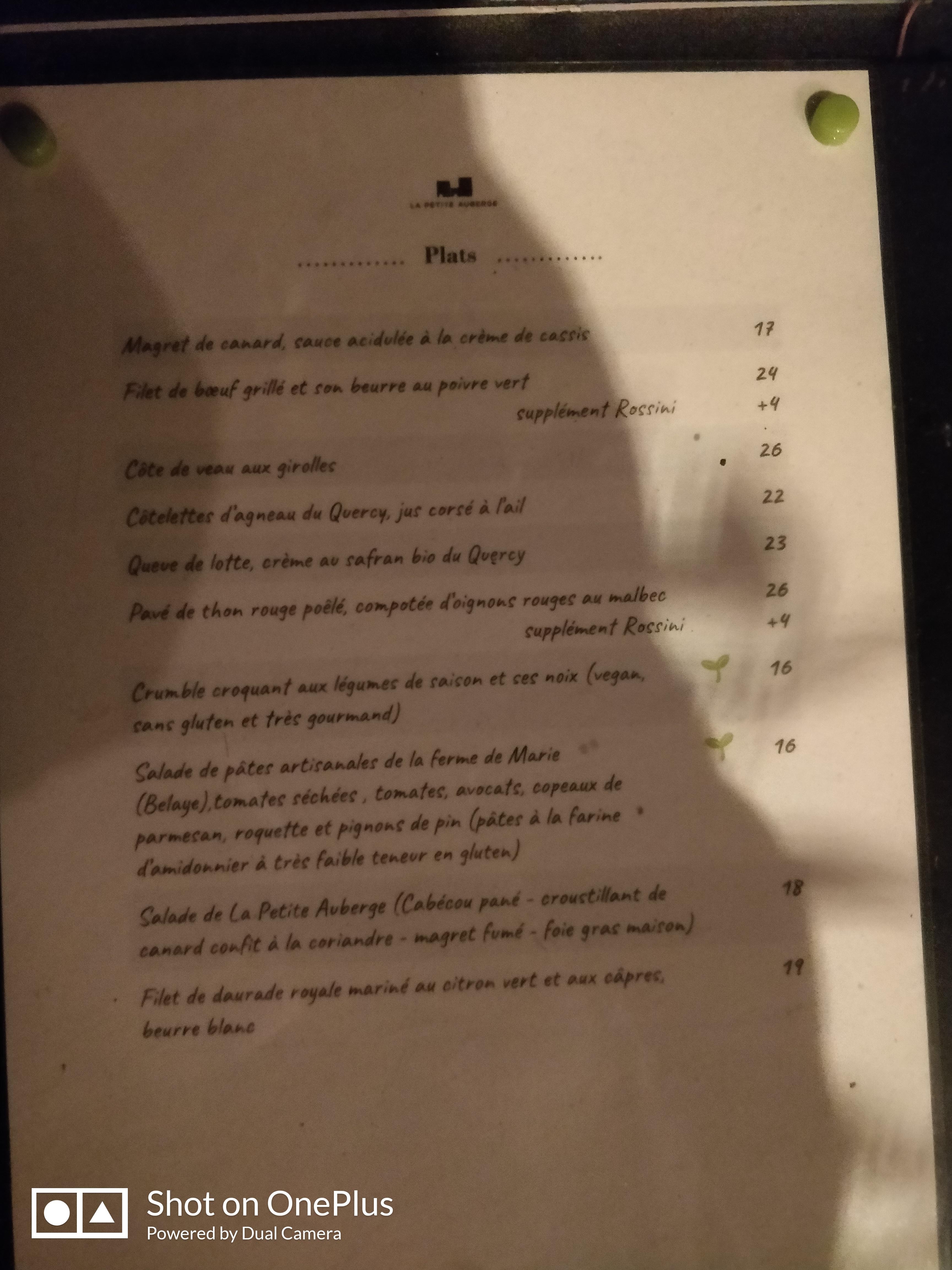 Nous avons très bien déjeuné! Lors de notre bref passage à Cahors, nous sommes tombé par hasard sur cet établissement. Personnel très chaleureux, souriant, toute l'équipe est renseignée sur la carte et répondra aux questions sans aucun soucis. Les deux menus disponibles avec entrée plat dessert présentent un vaste choix de plats, tout le monde y trouvera son bonheur. La nourriture est bonne, les aliments frais et biens cuisinés. On mange à sa faim ! Les quantités sont parfaites. Je vous recommande vivement la petit auberge si vous êtes de passage, vous y passerez un bon moment.
