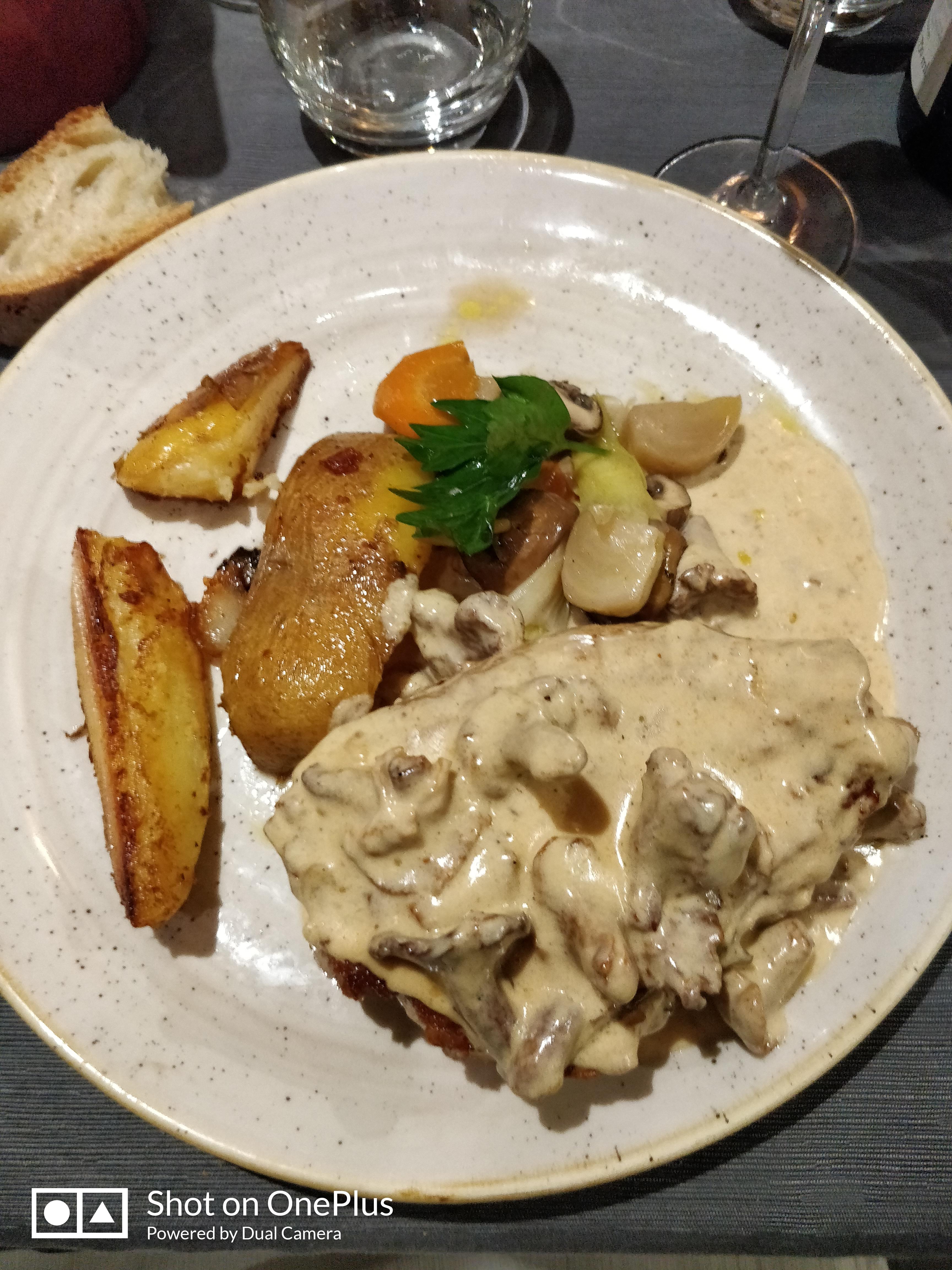 Un excellent repas écourté par mon départ en train de la ville, je n’ai pas pu goûter aux dessert. Cependant, mon entrée (foie gras) et mon plat (filet de bœuf sauce au poivre) était délicieux. Gros plus sur la cuisson de la viande qui était parfaite, petit moins sur la quantité de pommes grenailles mais la qualité était présente. Je recommande.