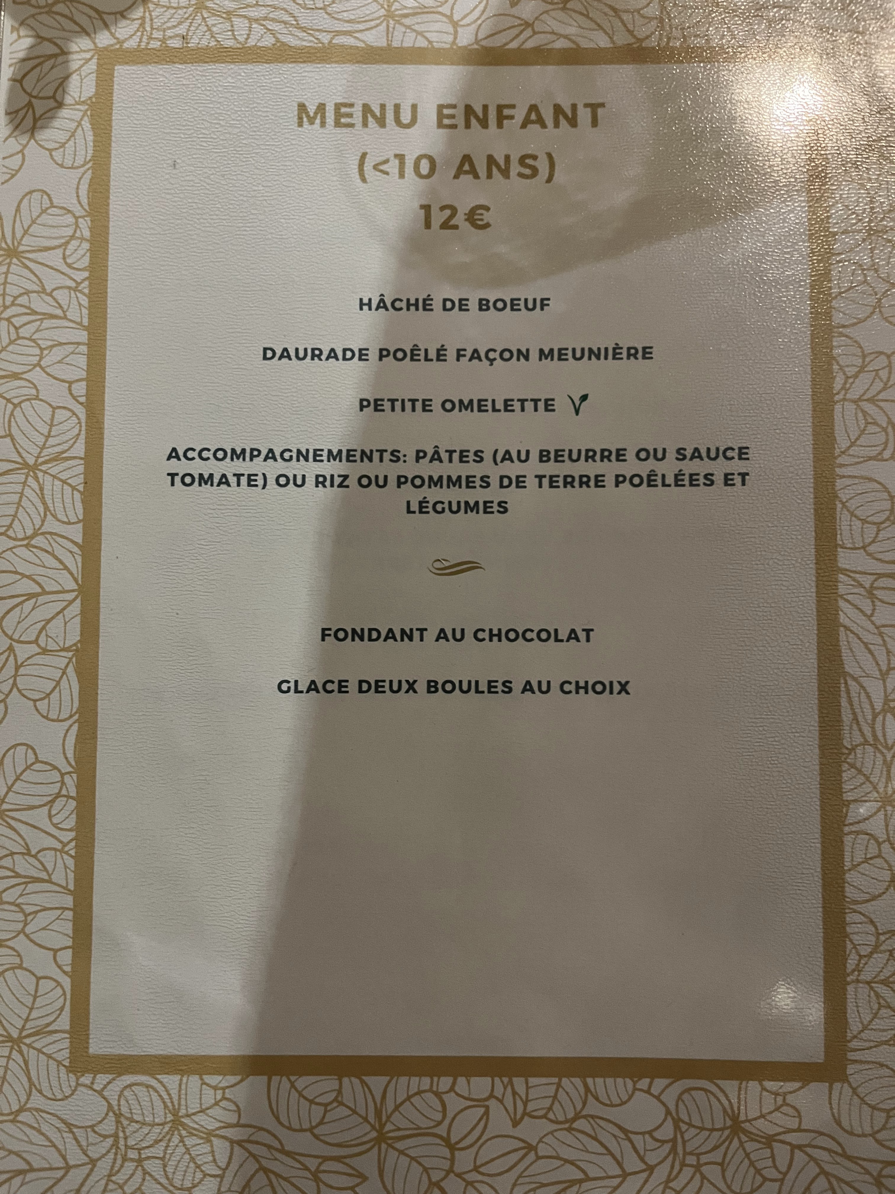 Repas très agréable avec de belles découvertes menus du soir à 30 ou 40 euros et 12 euros de menus enfants. A decouvrir. petit bémol le spritz et le cocktail sans alcool ce n' est pas un spritz pas très bien dosé dommage