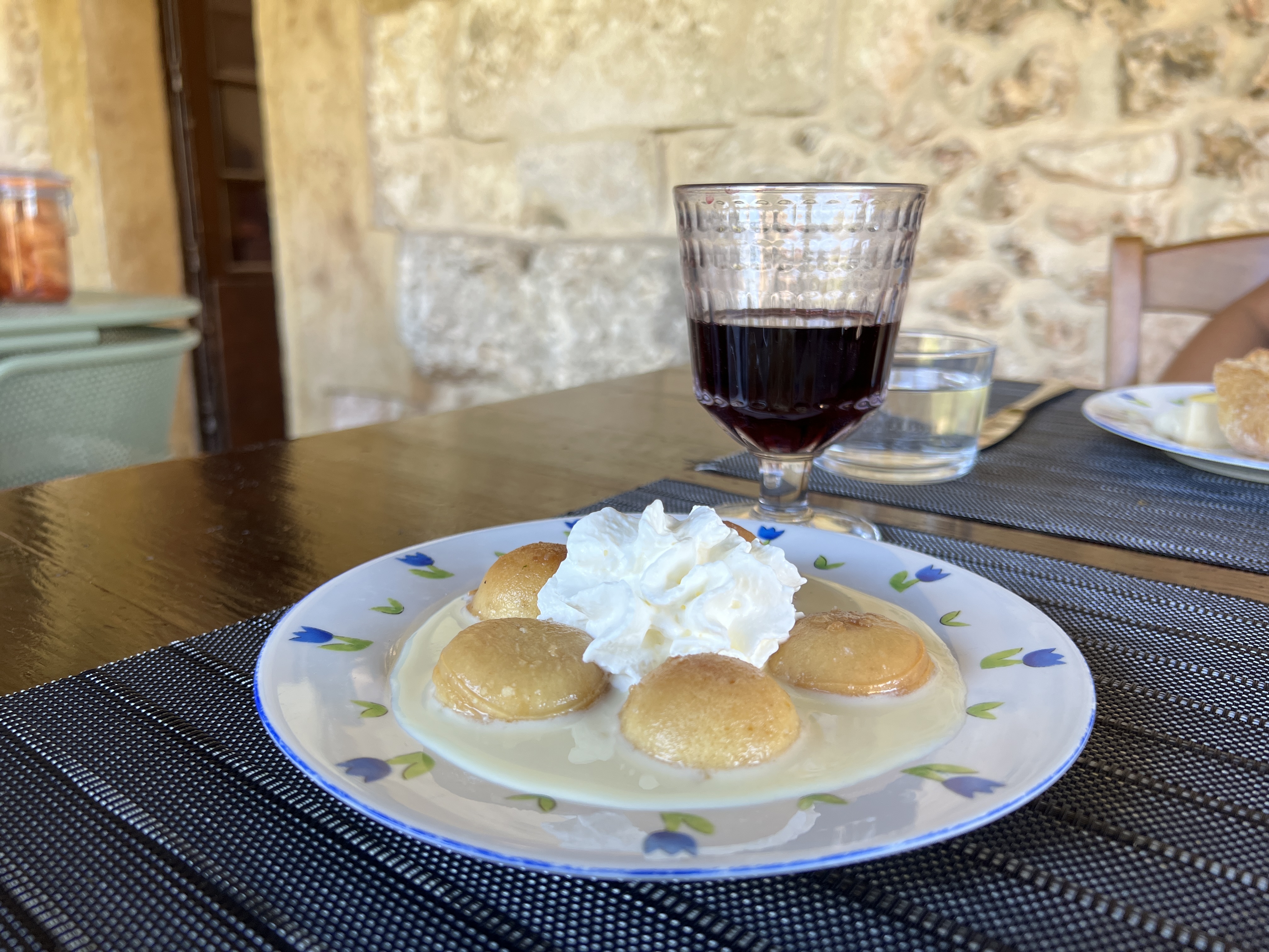 Deuxième expérience à la petite auberge, toujours un moment de paix dans le cadre idyllique d’une petite cour intérieur d’une jolie ferme en pierre. Menu unique avec une grande assiette périgourdine très copieuse, et un crumble aux pêches des produits frais, locaux, fait maison, et deux sympathiques dames qui vous accueillent comme à la maison. Le tout pour un prix très doux. Bref il me tarde d’y retourner, j’adore..!!!