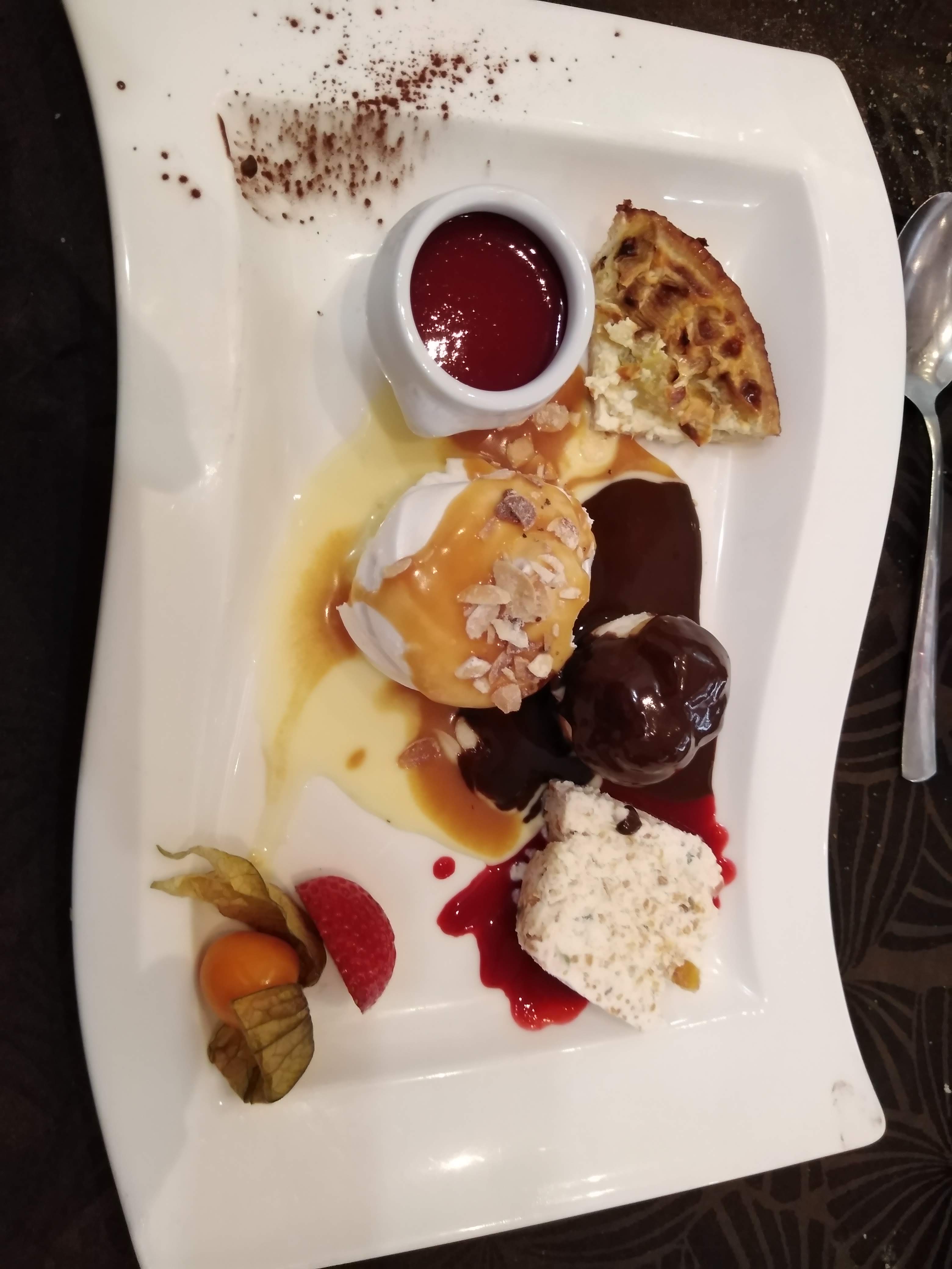 Repas en demi teinte sûrement dû au manque de personnel ! Un chef de salle qui court partout et du personnel débutant ! Une première entrée commandée mais qu’il n’y avait plus, un vin commandé, idem ! C’est dommage car la cuisine est bonne mis à part les desserts qui ne sont pas fait maison.