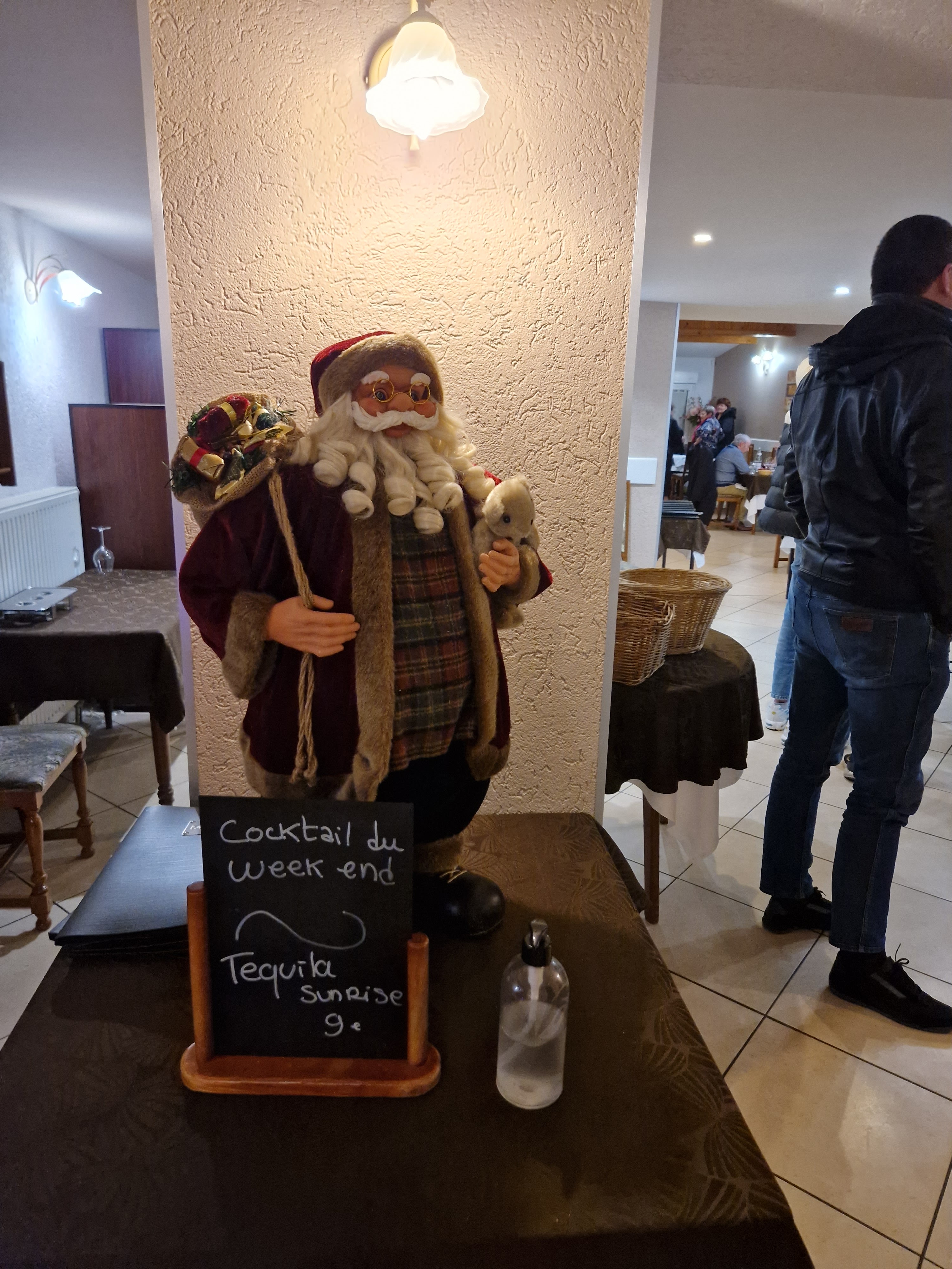 Il nous a fallu manger dans la pénombre et sous prétexte d'halloween on ne pouvait pas allumer les appliques au dessus de notre table . Le serveur ou patron veut être marrant mais ne l'est pas. La suite viendra encore ... Et la suite est venue. Le seveur qui se veut rigolo a rapporté au cuisinier que j'ai dit que la tête de veau était DEGUEULASSE. Ma remarque était j'ai connu mieux comme t^te de veau ! avec petits légumes, là uniquement des pommes de terre rôties un peu plus que tièdes. Même remarque à une table voisine. En résumé très mécontent du ?chef? de salle dont le rôle devrait être s'assurer que tous les clients soient heureux et relax. Nous avons constaté que le chef de cuisine devait assurer pratiquement seul la cuisine, d’où des plats sans couleurs. Il y aura encore une suite.... le clou, le chef de salle a procédé à l'établissement de la facture que mon épouse a payé, le tout avec son sourire jusque derrière les oreilles. Que ne fut pas ma surprise en voyant la facture. Il nous a été 3 desserts, alors que nous avions commandé 2 menus découverte avec desserts inclus. La tête de veau n'est plus proposée dans un menu, j'ai donc pris à la carte. Soit un dessert à payer à la carte. Lorsque nous avons reclamé , notre chef de salle a eu du mal à comprendre. A lafin, son sourire narquois avait disparu et mon épouse a été remboursée. Complément : pinot noir rouge : rupture ! Pinot rose rupture ! Rouge d'Ottrot : rupture ! En résumé : Économie d'économie pour 2 appliques pour le dieu Halloween au détriment ses clients uniques, ruptures de vins mentionnés sur la carte sans prévenir, chef de salle avec humour déplacé, Etc.