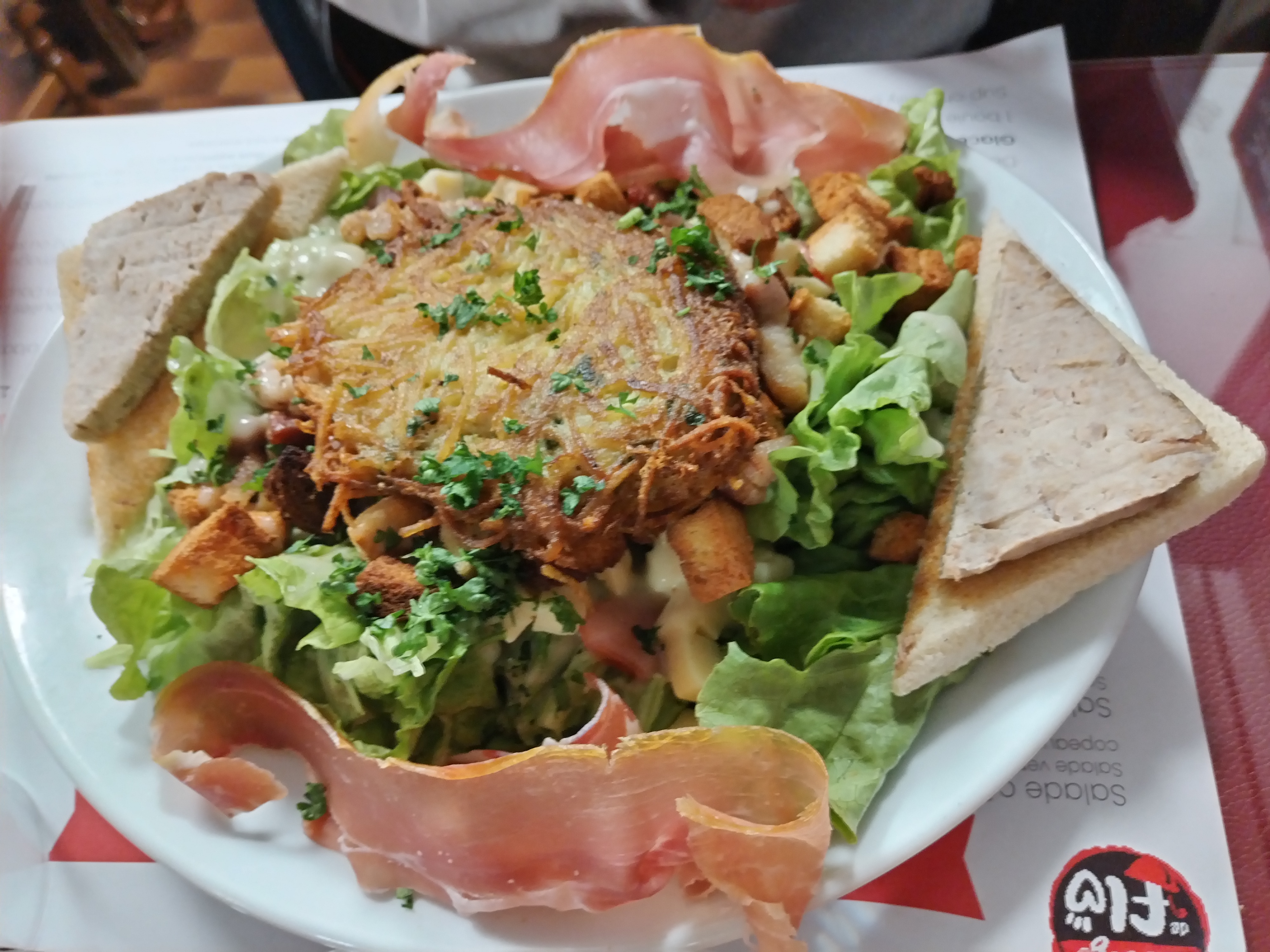 A FUIR BIÈRE CHAUD PAIN DUR ASSIETTE DE CHARCUTERIE :1 TRANCHE DE SAUCISSON PAS MAISON,1 TRANCHE DE PATER EN BOITE DÉGELÉE. DESSERT FROMAGE 3 MORCEAUX MINUSCULE!!! MAINTENANT MALADE JE DÉCONSEILLE