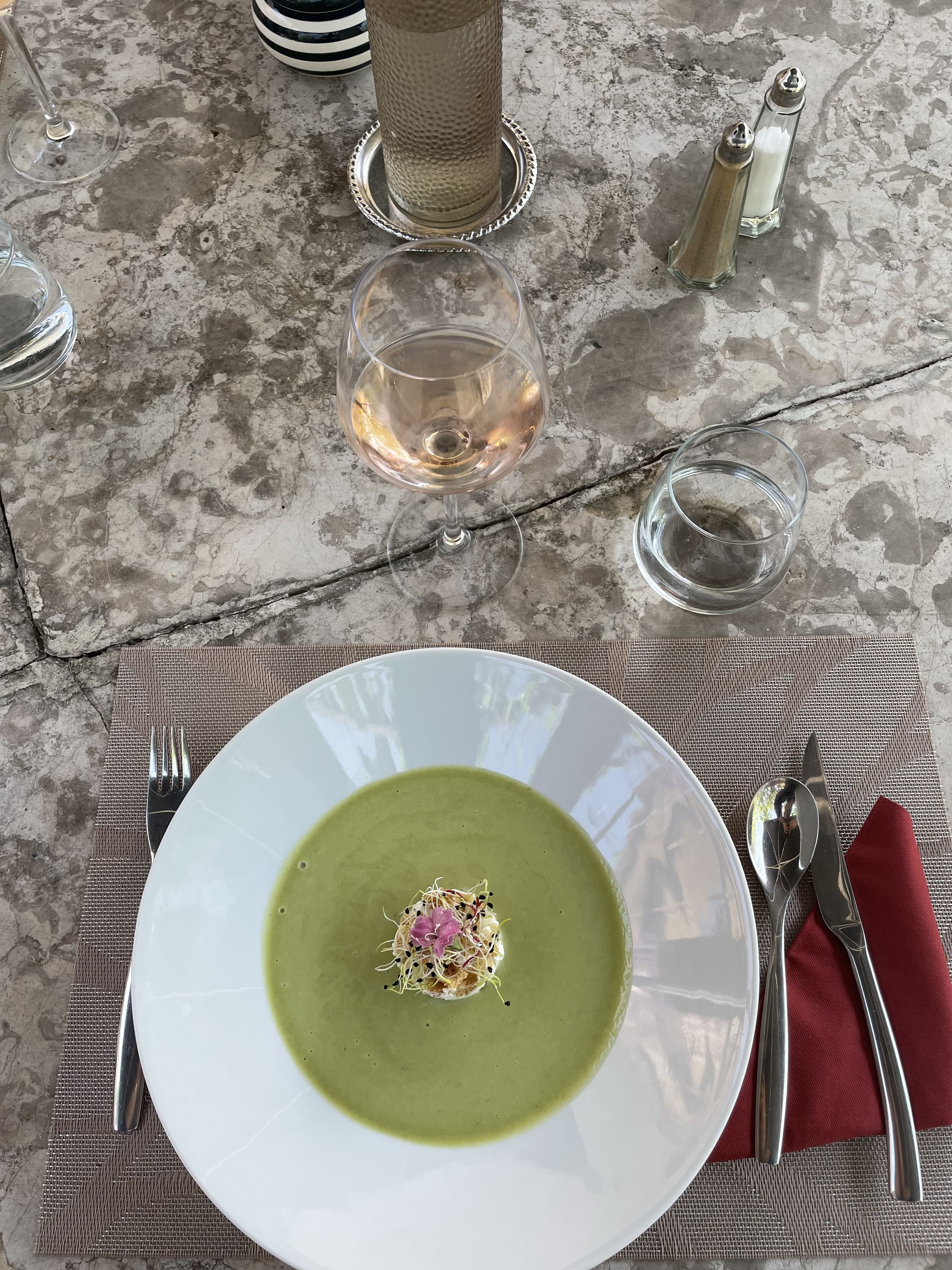 Tout y est délicieux, raffiné, la présentation est remarquable, recherchée, les assiettes sont copieuses, la terrasse et la salle sont très belles. Le seul bémol c'est le manque d'amabilité du chef, pas très accueillant du tout. Et l'accueil et le sourire sont primordiaux pour moi.