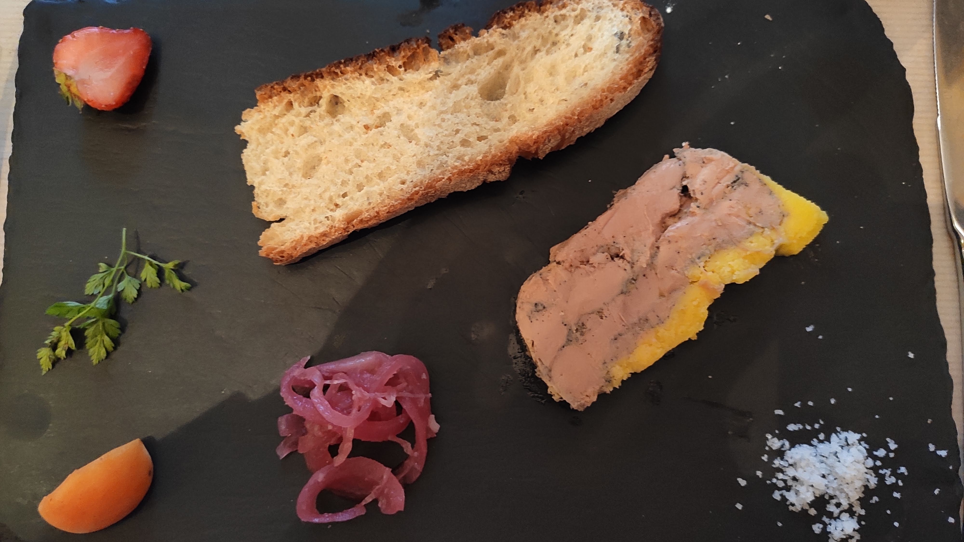 Entrée servie avant l apperitif. Fois gras semble congelé. Anchaud simple tranche de rôti de porc amélioré grâce à la sauce. 1 plat principal oublié sur 6. Très touristique