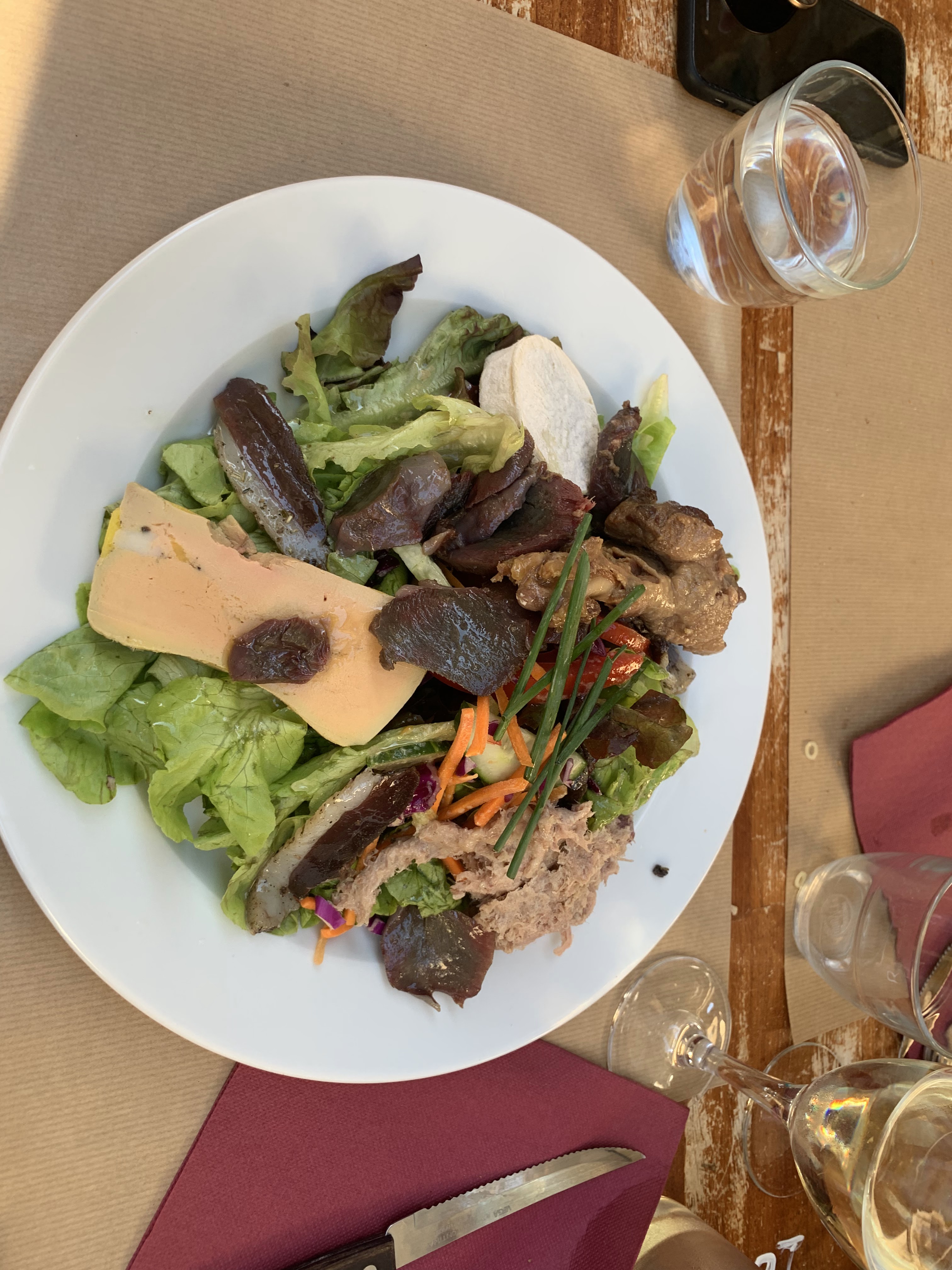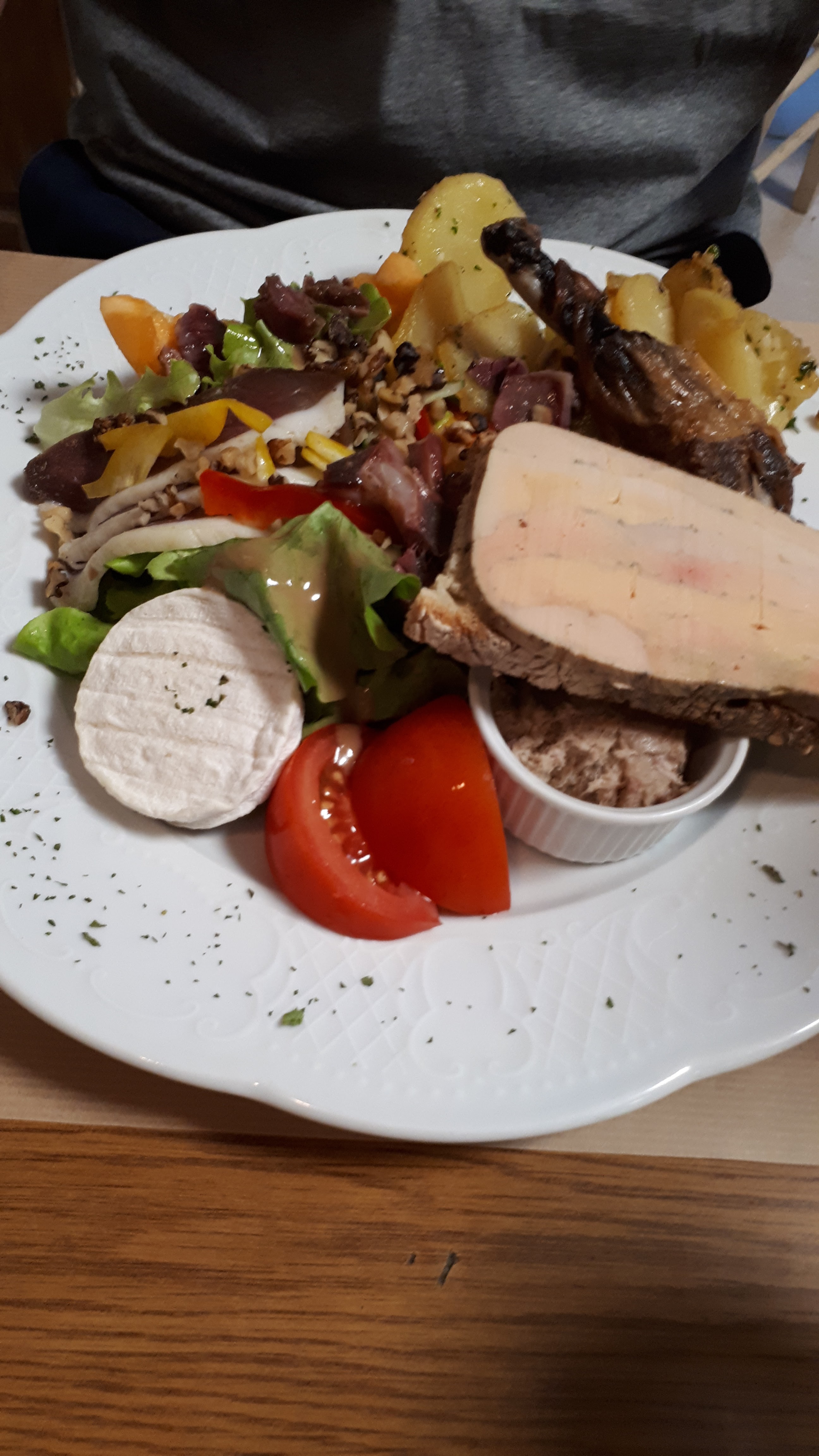 Une salade périgourdine vraiment délicieuse et bien garnie ! Nous n’avons pas mis 5 étoiles pour le service qui pourrait être plus accueillant.