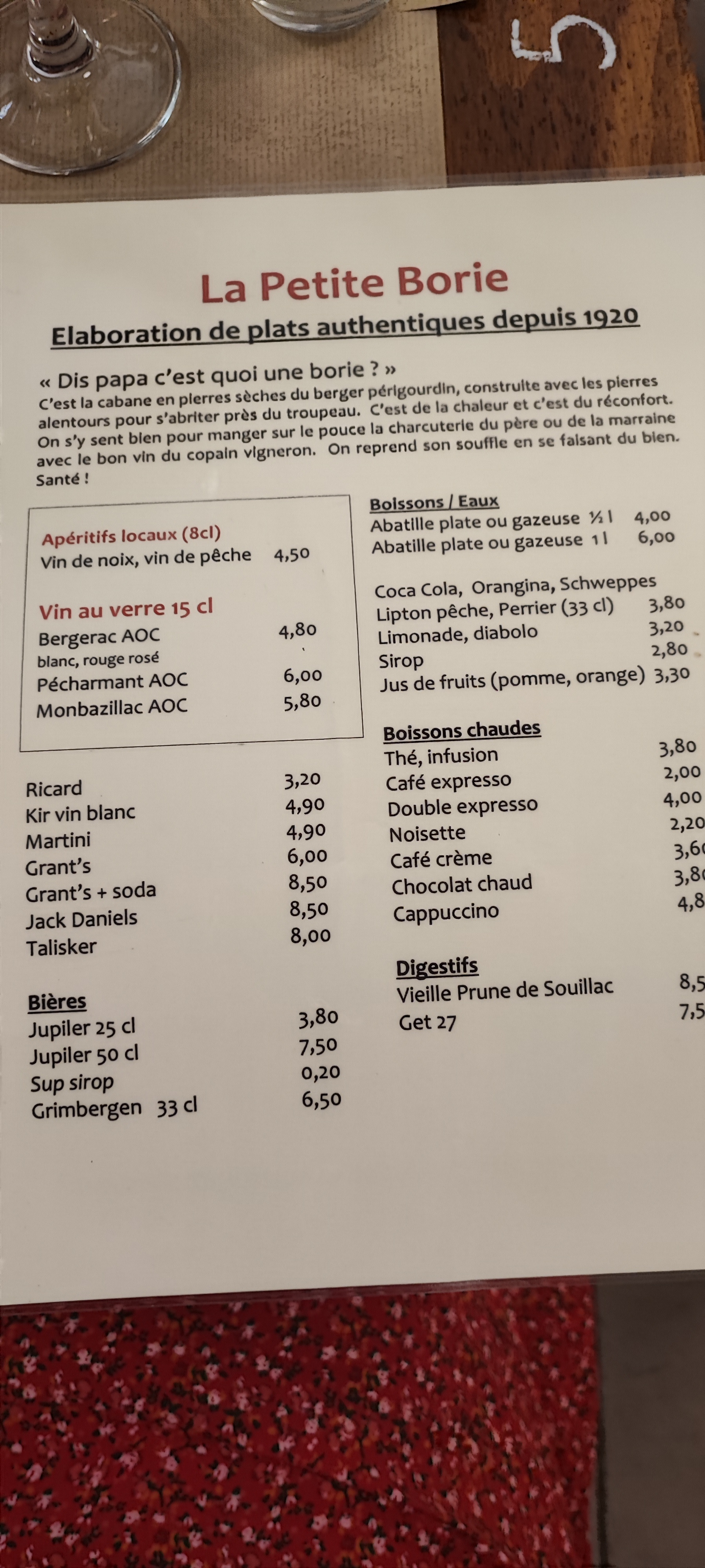 Très bon restaurant: décor simple, accueil chaleureux, nourriture bonne et copieuse. Nous l'avons trouvé par hasard et avons passé un très bon moment. Le patron a un mot gentil pour tout le monde. Il nous a donné de bons conseils de visites dans la région. C'est un très bon rapport qualité prix dans une ville aussi touristique que Sarlat et donc une bonne surprise . Le gérant de la chambre d'hôtes dans laquelle nous sommes restés nous a également confirmé que la Petite Borie fait partie des bonnes tables de la ville donc je le recommande sans hésitation.