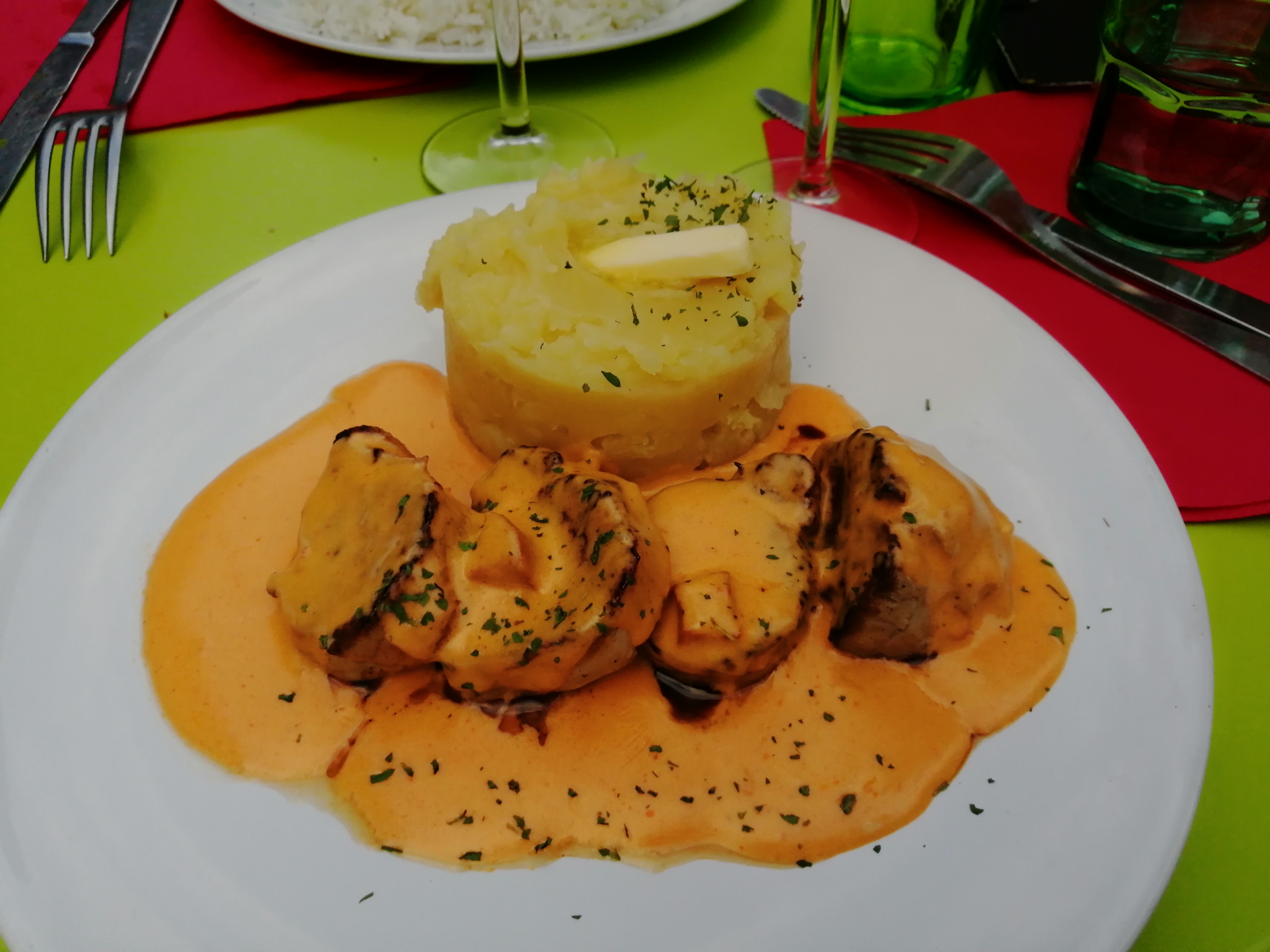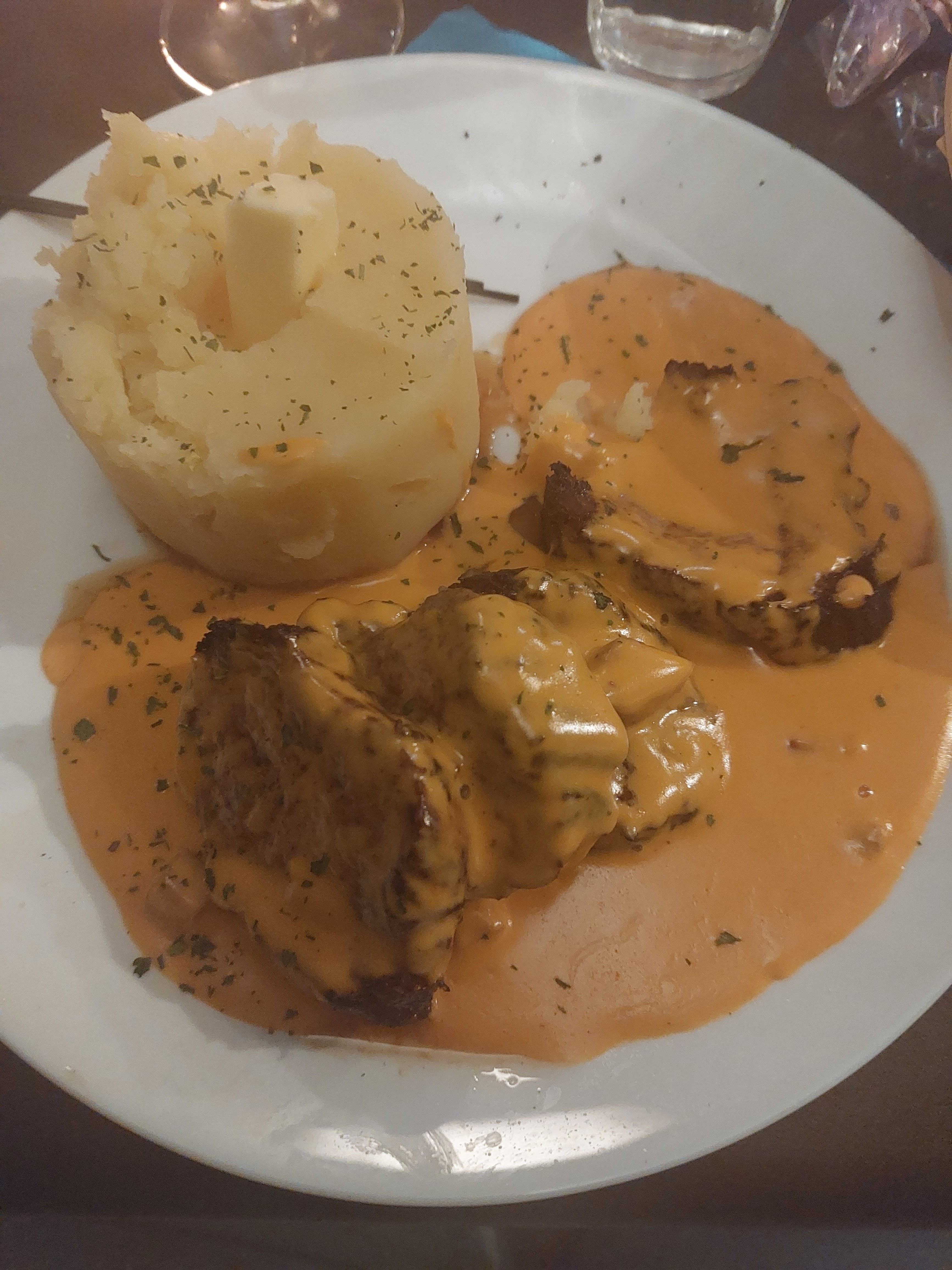 Service bien mais le sauté de dinde avec du riz ( le riz baigné dans l'huile d'olive je ne sentais même pas la sauce Neufchâtel) et après les profiteroles étaient cramé et sec!! J'ai déjà mangé mieux!!