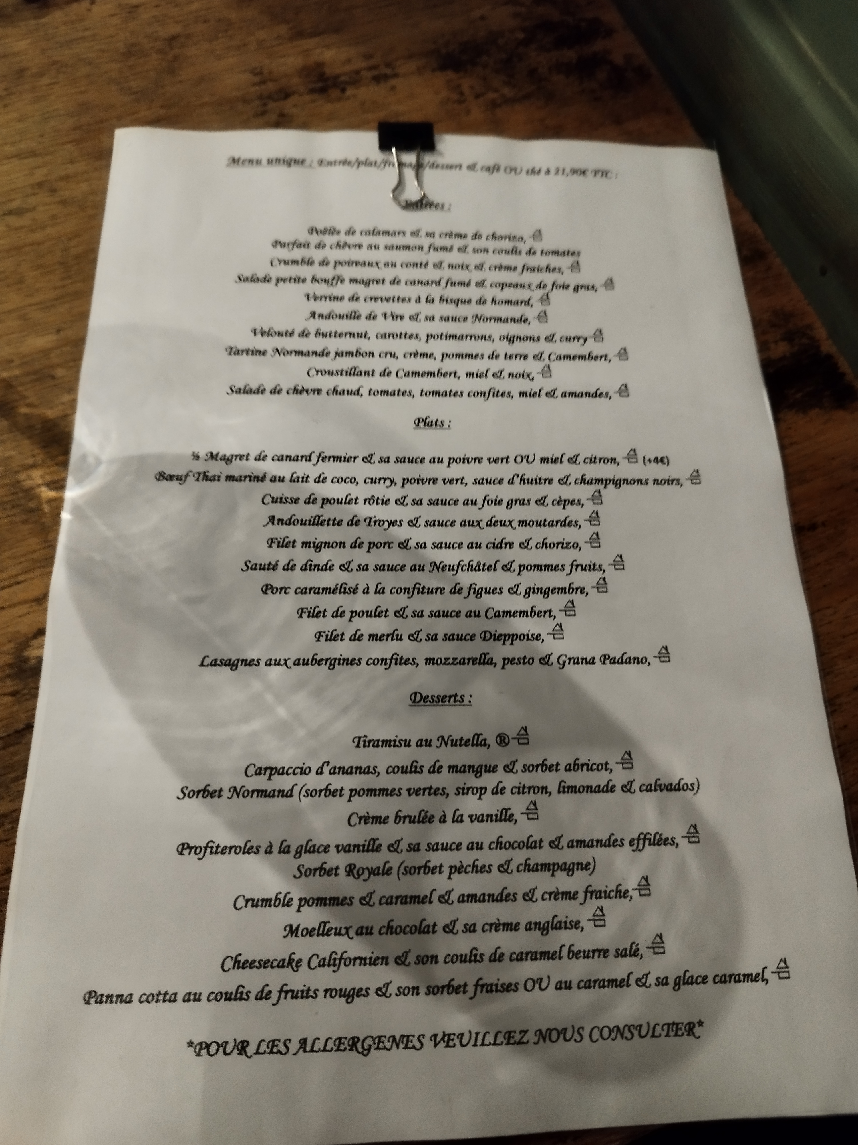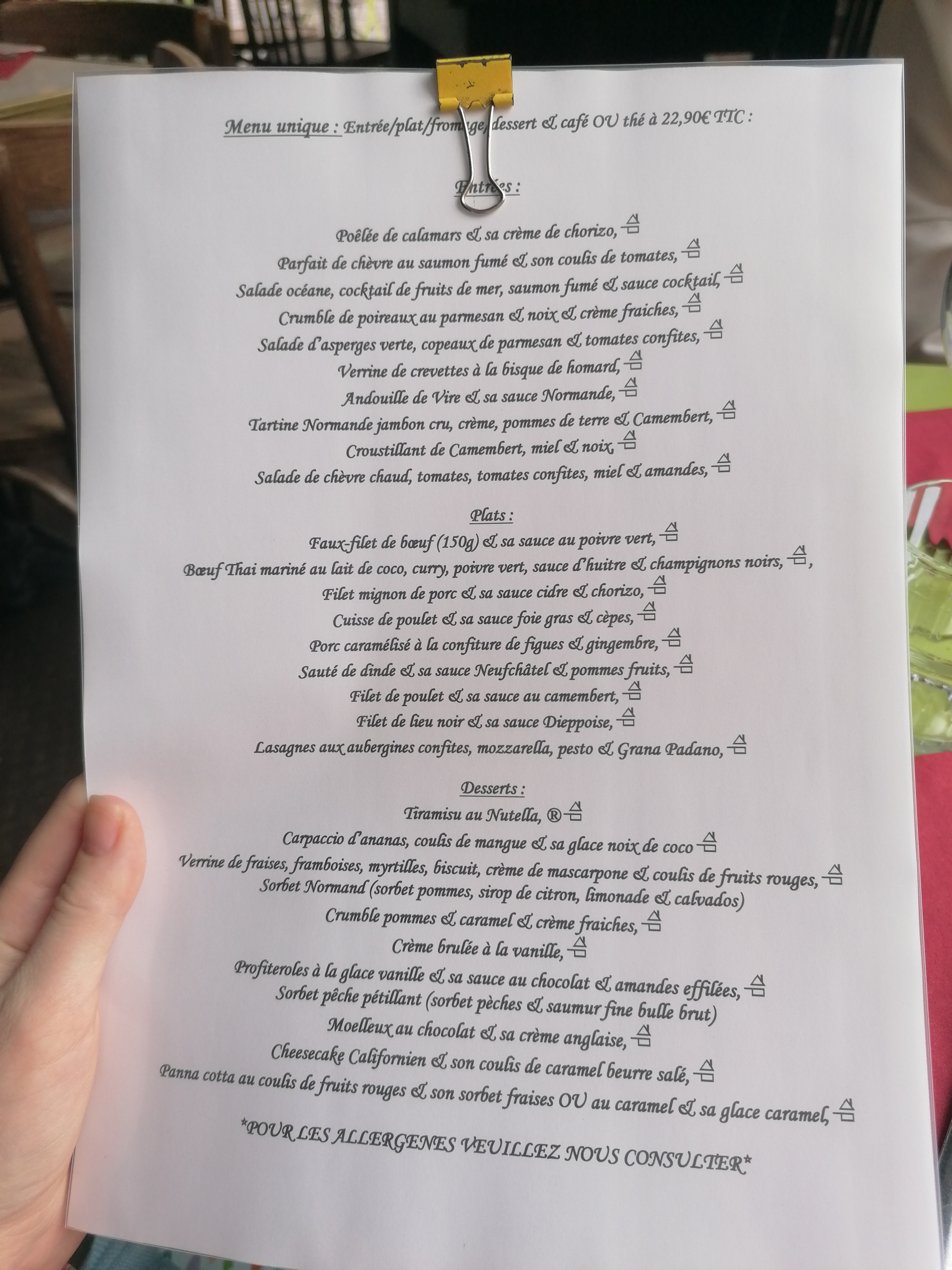 Superbe adresse à faire quand l’on vient à Rouen. 22€ le menu avec entrée plat fromage dessert et café/thé, surtout avec autant de possibilités de plats ET avec des produits de bonne qualité et bien cuisinés, c’est vraiment le must !!!