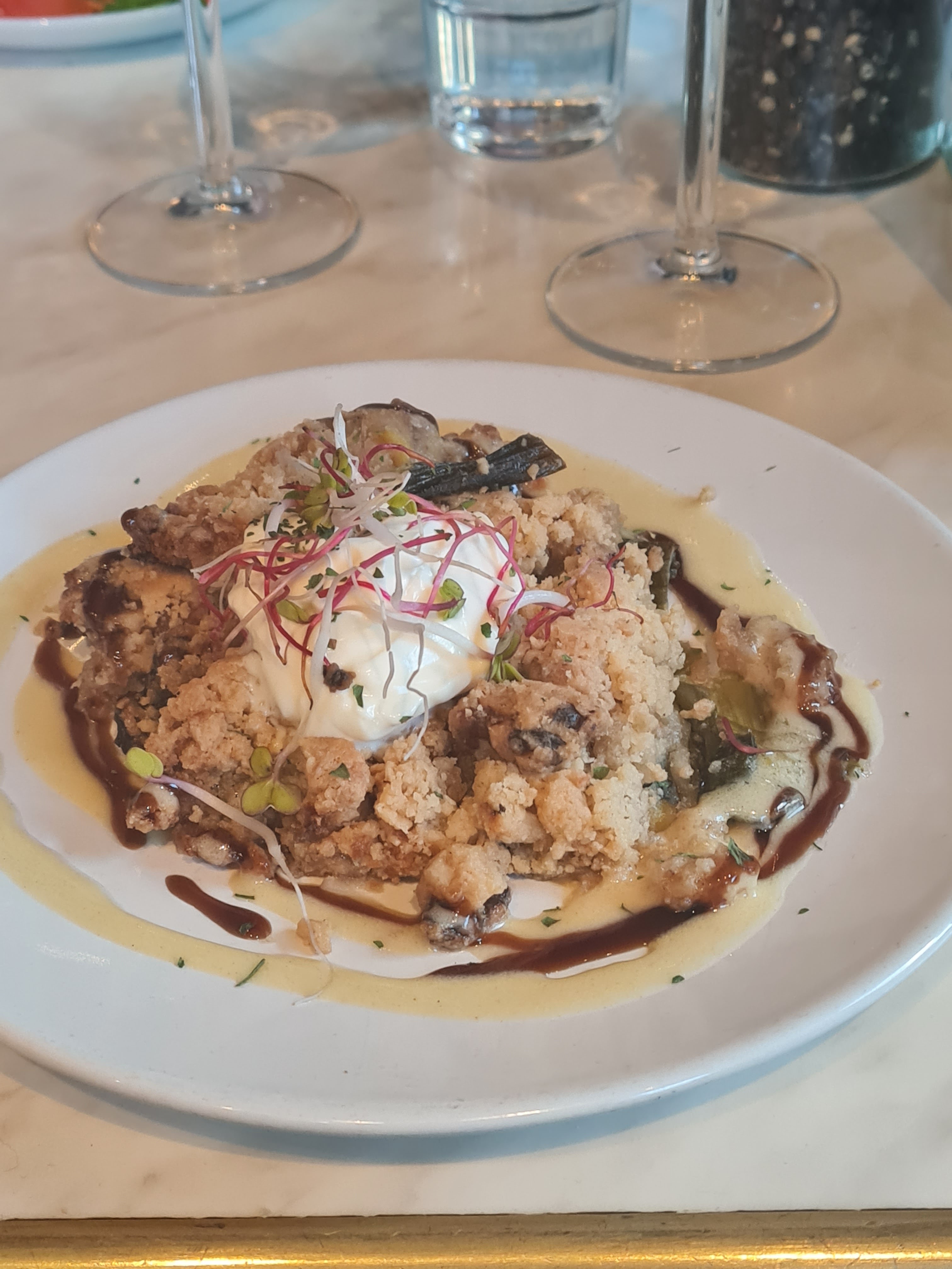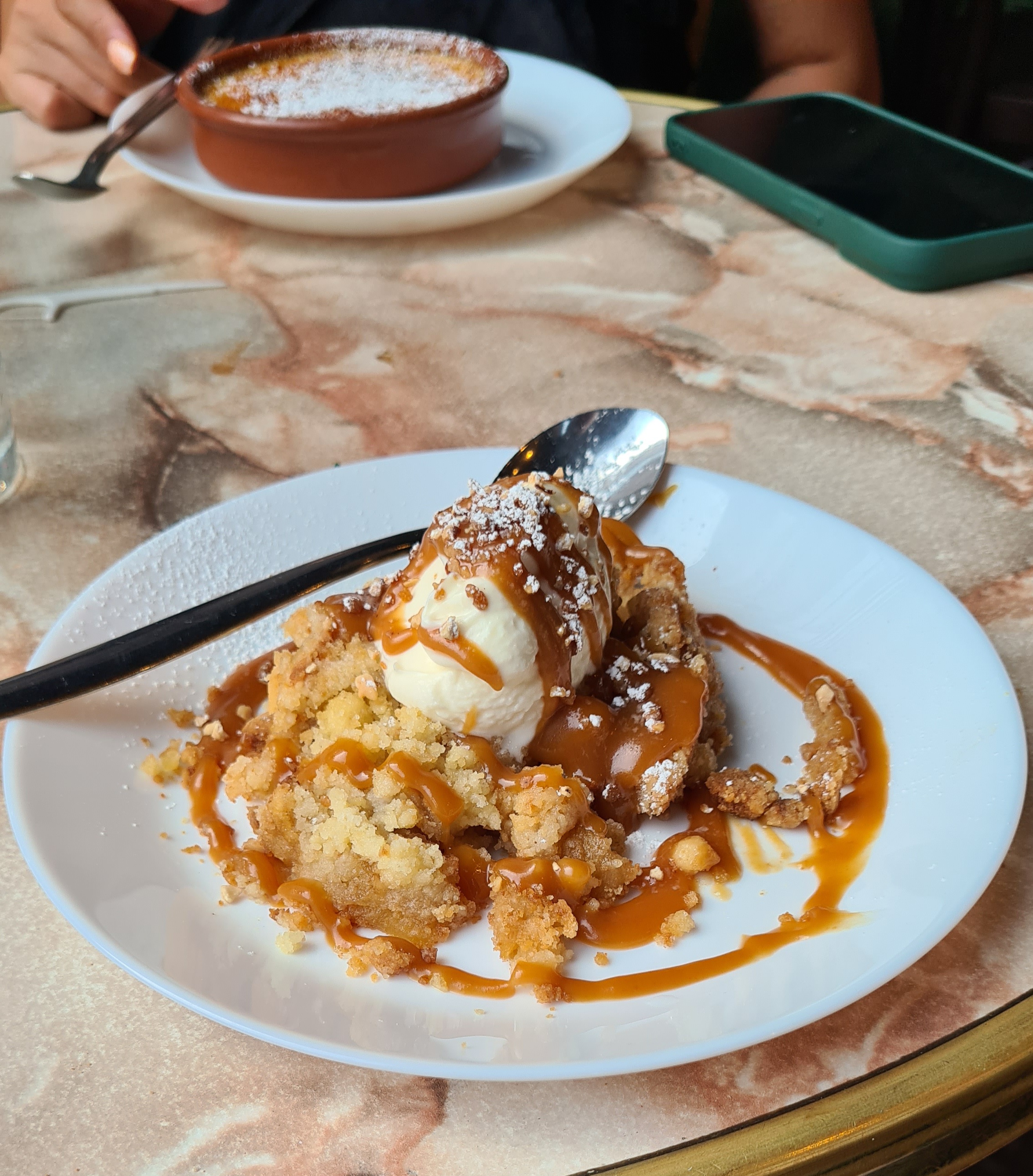 On a partagé un bon moment en famille à la petite bouffe. Les serveurs ont été très accueillant et nous superbement installé et on stocké notre poussette. L'andouillette même si pas 5A est délicieuse avec sa sauce aux deux moutardes. Le. Crumble est très gourmand, je recommande. N'hésite pas à manger là bas si vous êtes à Rouen.