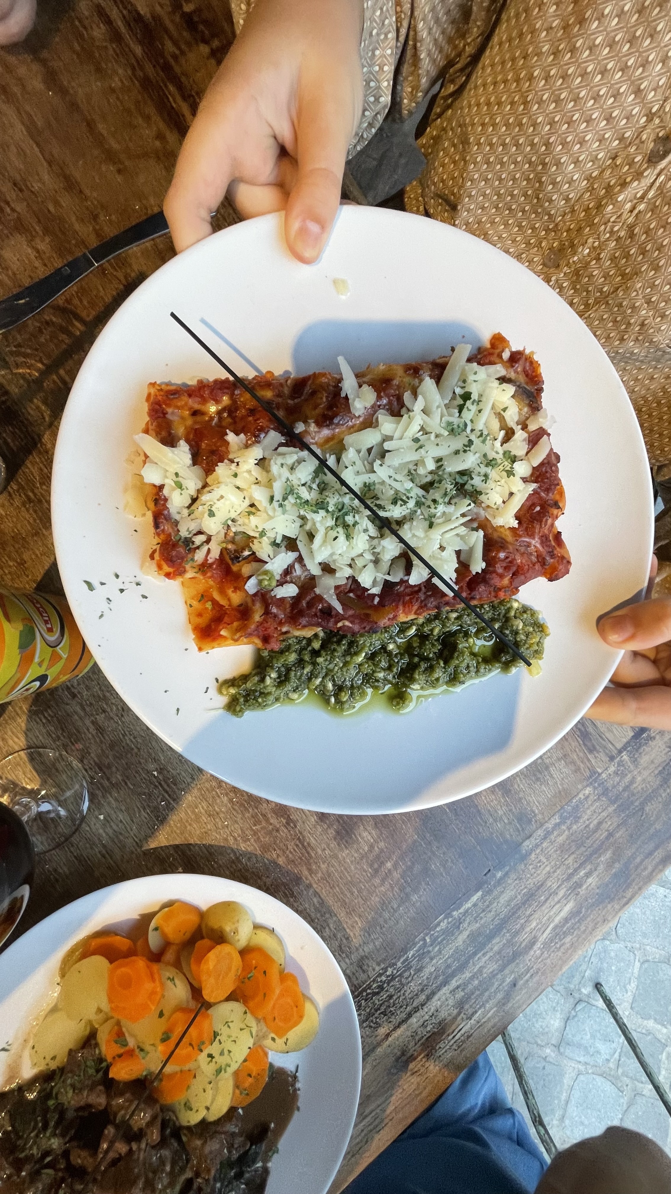 Resto très sympa. On a prit entrée, plat, dessert. Nous avions pris un peu de tout et goûter un peu chez tout le monde. C'était délicieux, les entrées sont très copieuses, plats sont excellent et les desserts sont faits maison. Le service est très bien. Les garçons sont très sympathiques. Un point que ils peuvent ameillorer, c'est le confort. Nous avions mangé dehors mais les tables et chaises sont assez petites. Merci beacoup pour le bon repas !