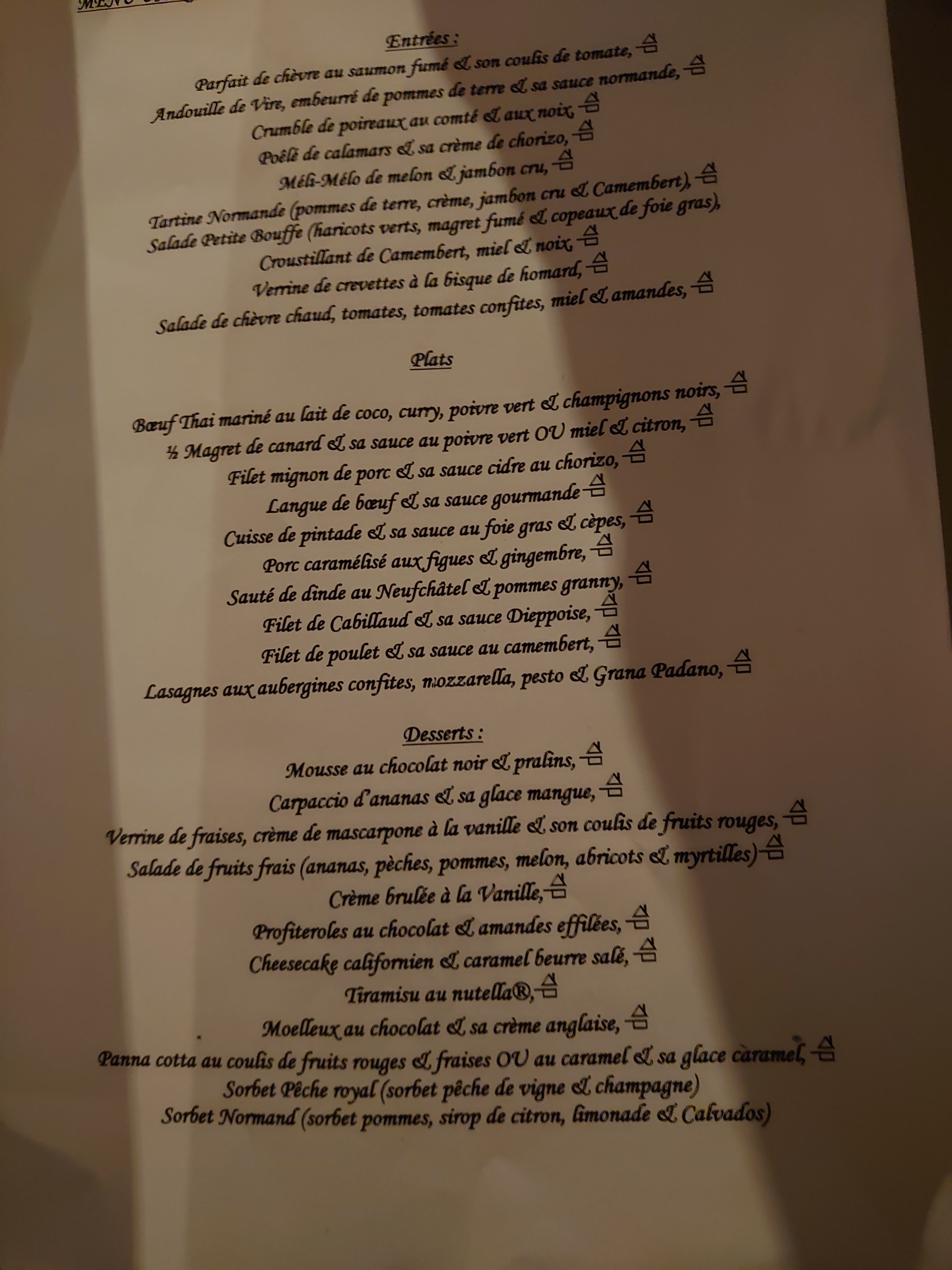 Bonjour à tous ! Nous étions déjà venus en juillet dernier et c'était un délice ( voir les photos 1-8) Nous avons réitéré notre expérience se soir et c'était délicieux, les serveurs avaient le sourire, étaient très serviables,... De plus, la nourriture est de qualité avec un menu unique proposé au prix de 22.90€ avec entrée, plat, fromage, dessert et thé ou café. (Photo 9-16) Par contre, si vous souhaitez y aller un samedi soir, appeler pour réserver car l'endroit est petit ce qui permet d'être au calme car peu de monde ( salle d'une 40 de personnes) . Pour conclure, c'est un très bon restaurant situé en centre ville de Rouen avec une bonne ambiance ainsi que des personnes souriantes et un service de qualité.