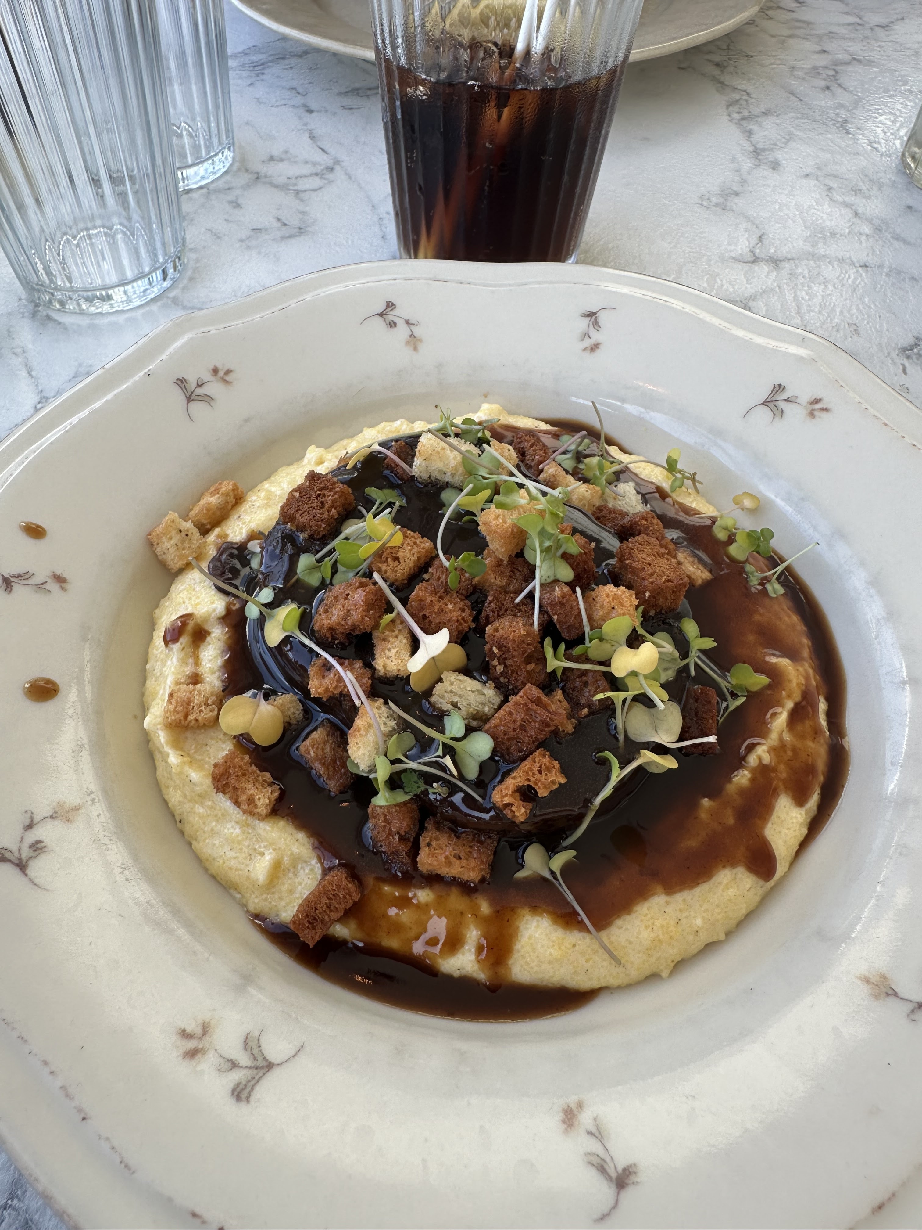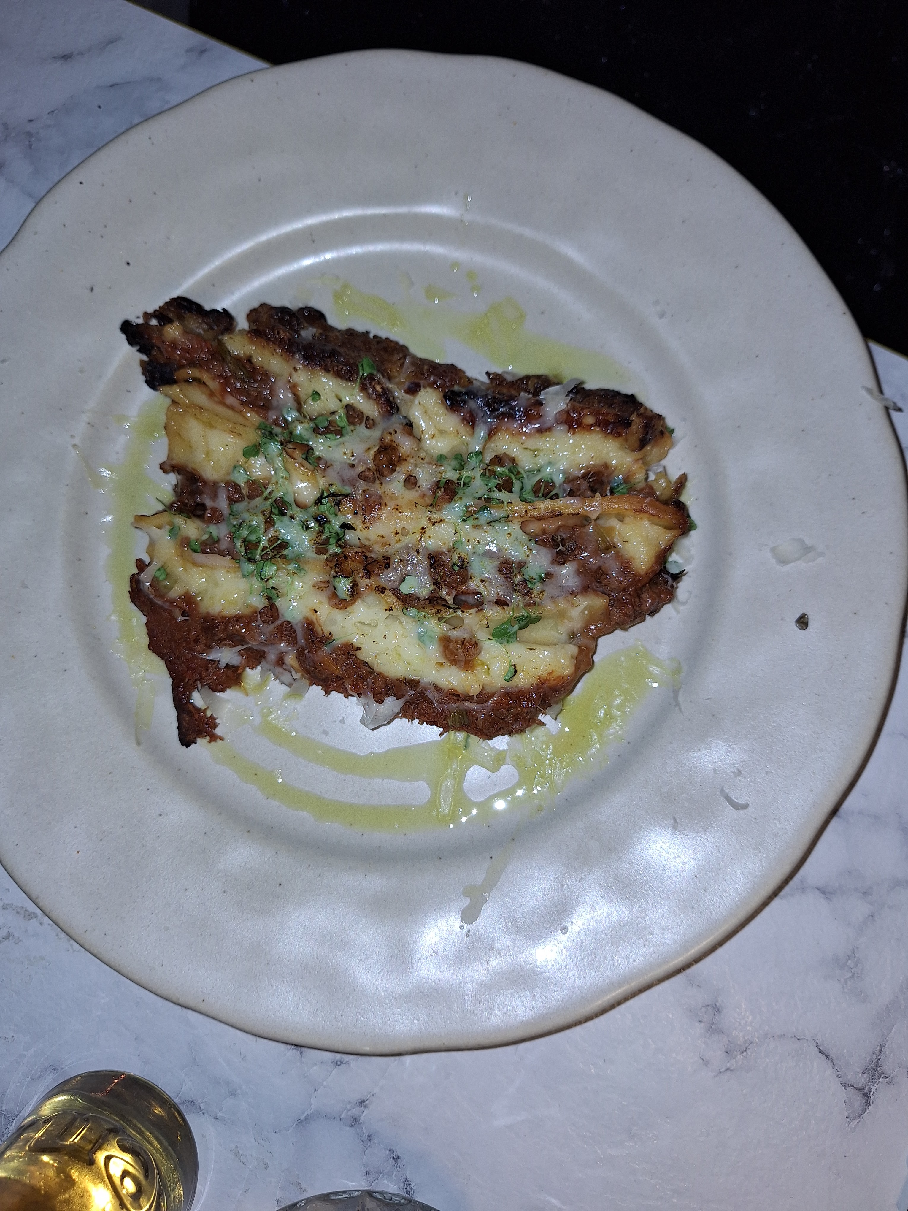 Les gnocchis à la truffe étaient trop gras et lourd. Ca baignait dans une très épaisse sauce crémeuse. Le plat est arrivé brulant. Les gnocchis étaient trop cuits et ça donnait une consistance comme une purée. Trop lourd à digérer et assez écœurant .