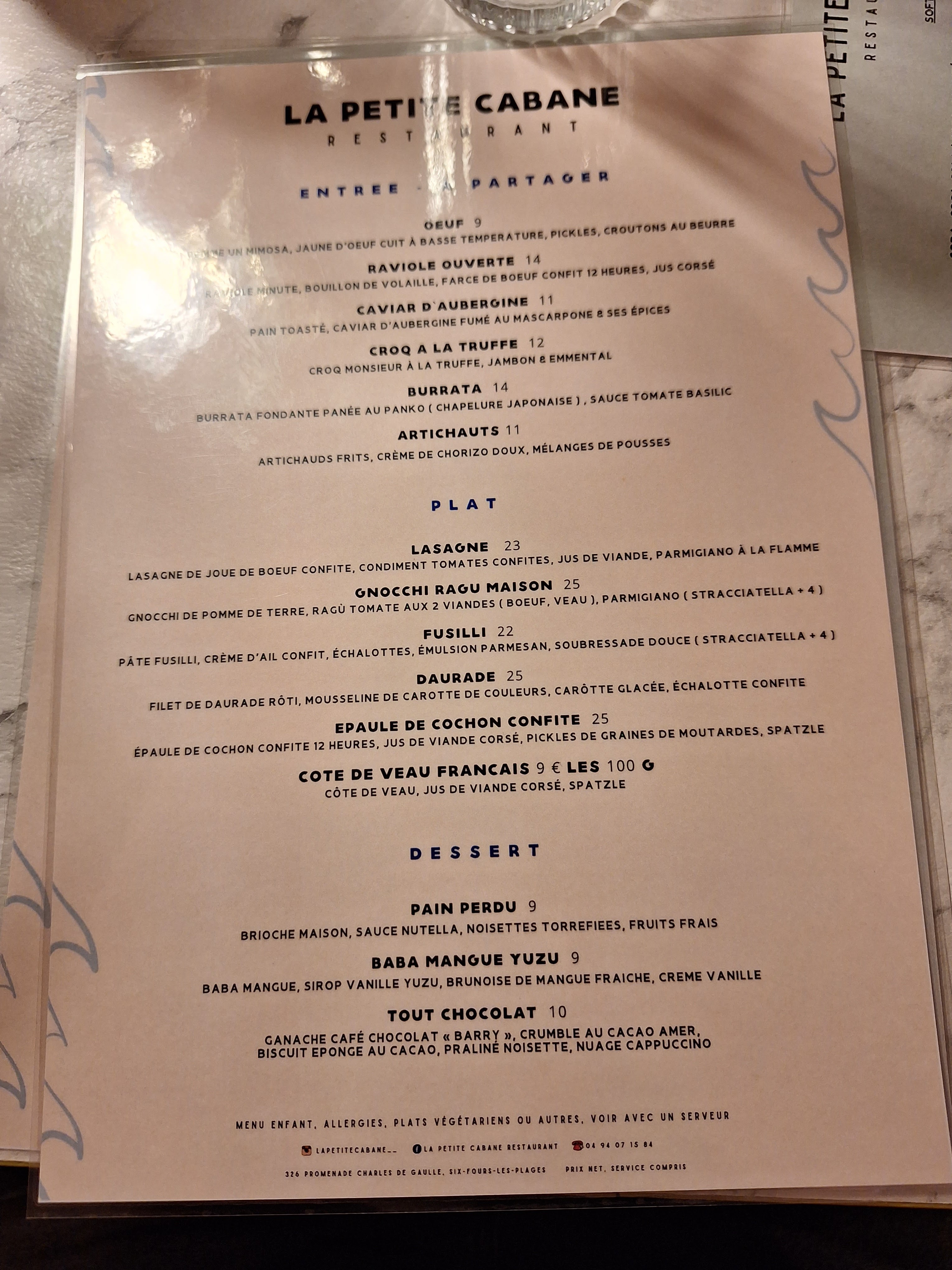 Belle découverte à Six Fours, une équipe jeune qui proposent des plats copieux et goûteux, le soir le cadre est feutré et très agréable. Bon rapport qualité prix À refaire