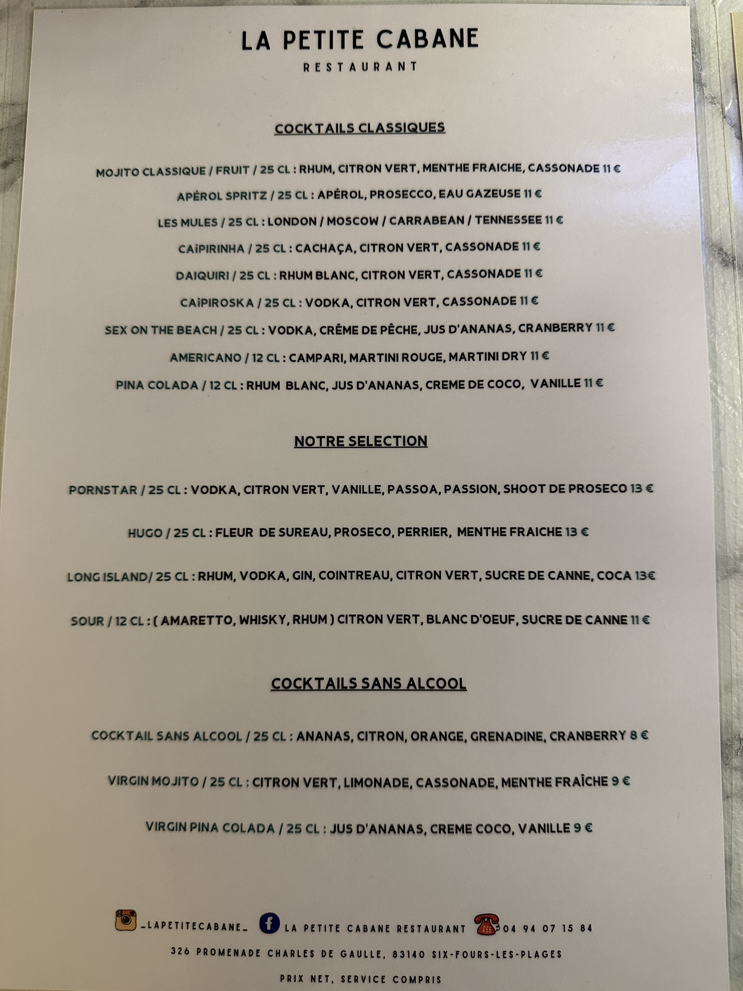 - ✔️ Cocktails et apéritifs