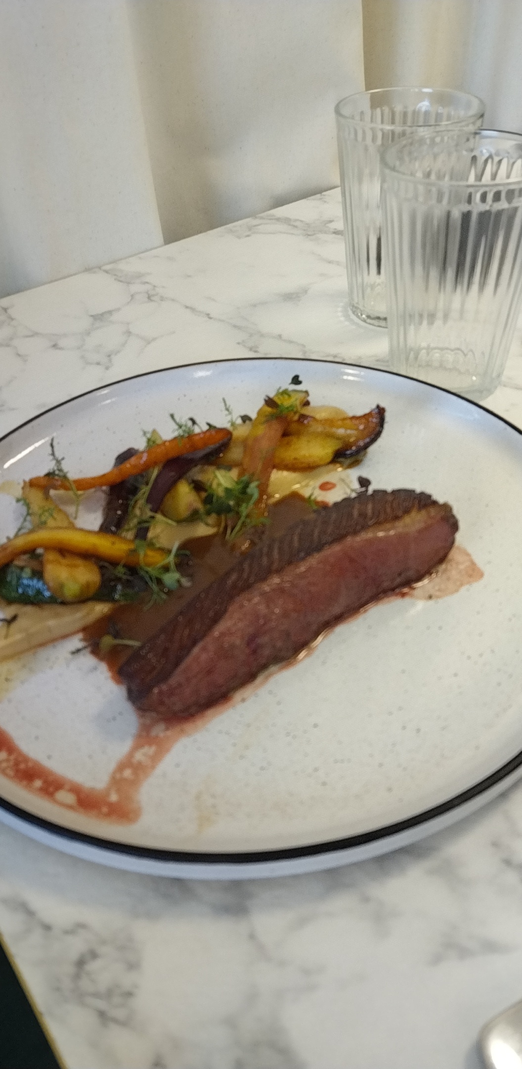 Tout était très bon, de l'entrée (ceviche) au dessert (tarte aux agrumes). Par contre, les filets de canette, outre la sauce, n'étaient accompagnés que d'une purée,certes maison, mais je trouve que cela aurait mérité d'autres légumes. Globalement, même si la qualité était au rendez-vous, le prix était à mon avis quelque peu surévalué...