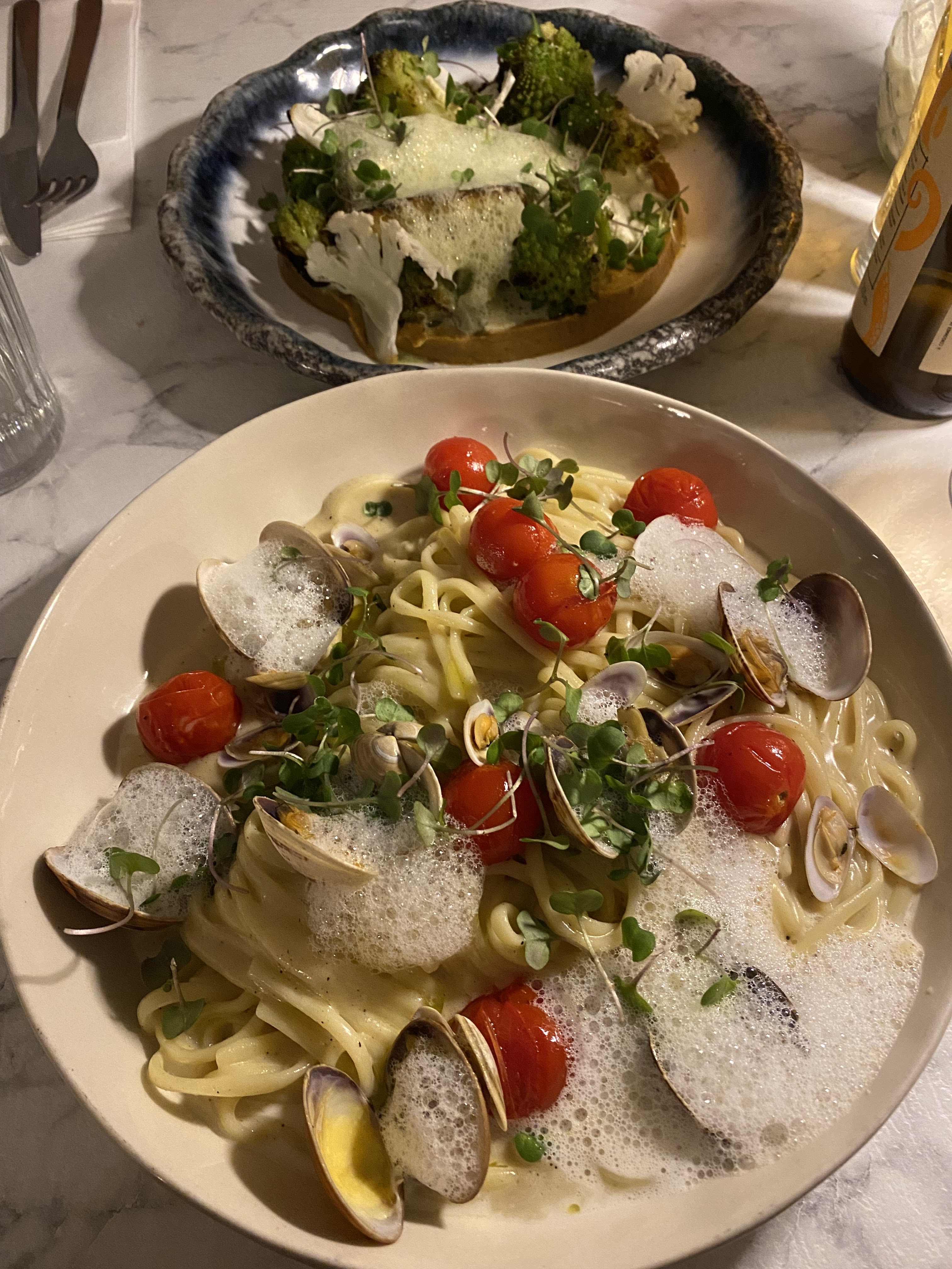 Le plat de pâtes aux palourdes est clairement passé dans mon top 3 des plats de pâtes que j’ai eu la chance manger. Je me suis régalé du début à la fin même si j’avais plus vraiment de place pour le dessert. Le cadre est sympa et le serveurs très agréables. Cela vaut le détour.