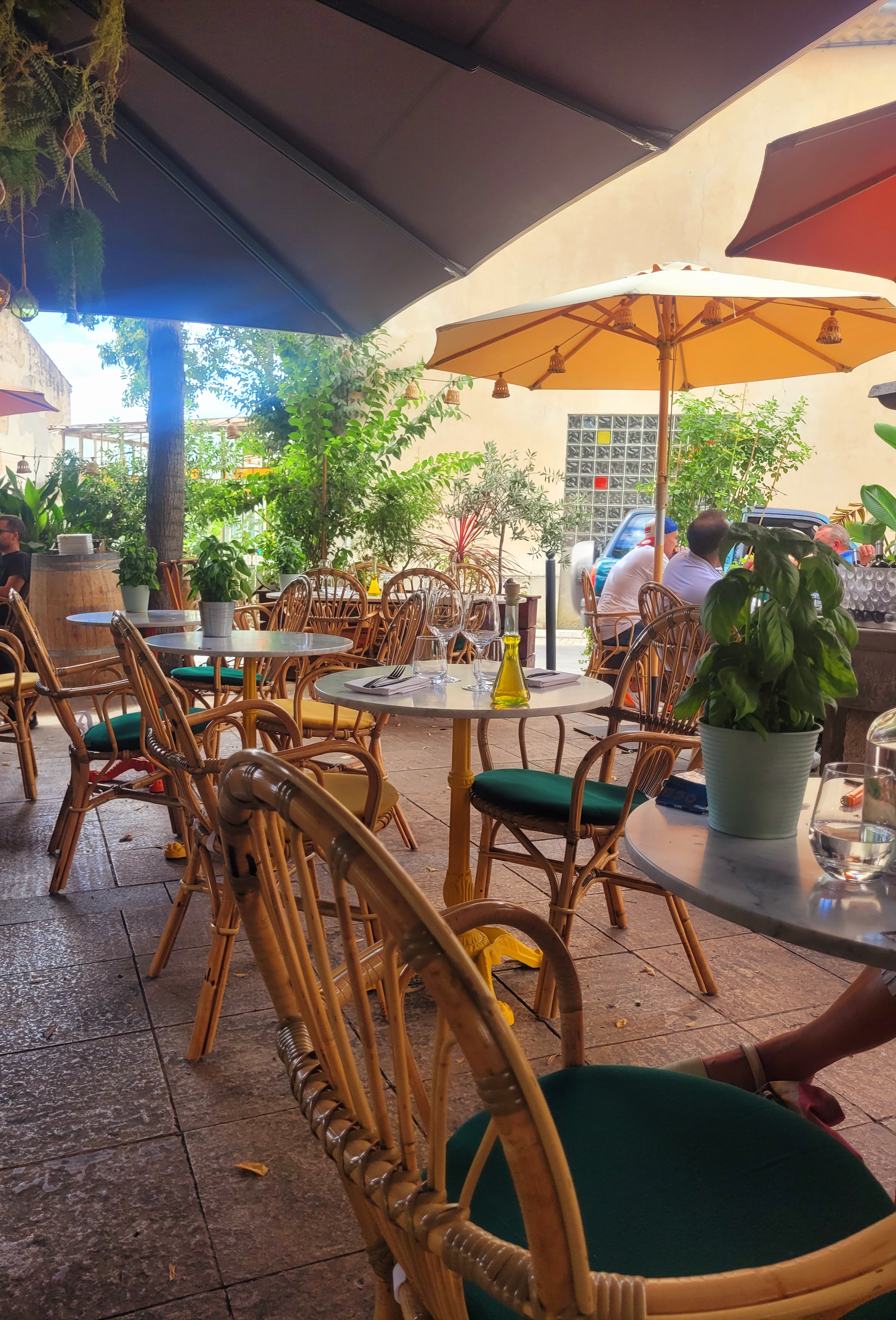 Nous avons pris notre repas du soir sur la terrasse : parasols, plantes vertes, fleurs, fontaine, fauteuils confortables, coussins, bougies allumées à l'arrivée du soir... Un petit paradis 🙂 Des cocktails variés, un jus de tomates savoureux et goutu. Une large carte où tout client, jeune, vieux, enfant... trouvera son bonheur : pizza, plats gastronomiques, menu enfant. Les plats ne sont pas en reste de compliments : ceviche de daurade, betterave, orange, pomme... un régal, encornets persillés... tendres et croustillants, pizza quatre fromages à la confiture de figues... un délice pour les papilles, linguine aux palourdes... merveilleuses, escalope milanaise panée, roulée avec des herbes aromatiques, entourée de jambon de Parme et de vermicelles de scamoza accompagnée de fetucini à la crème de parmesan... harmonieusement équilibrée et succulente, tartare de boeuf, noisette, truffe et frites de polenta... succulent. En prime, des serveurs charmants, certains venant d'Italie avec un accent chaud et chantant. On s'y croirait 😉 Un sans faute 👏 On reviendra sans hésitation.👍