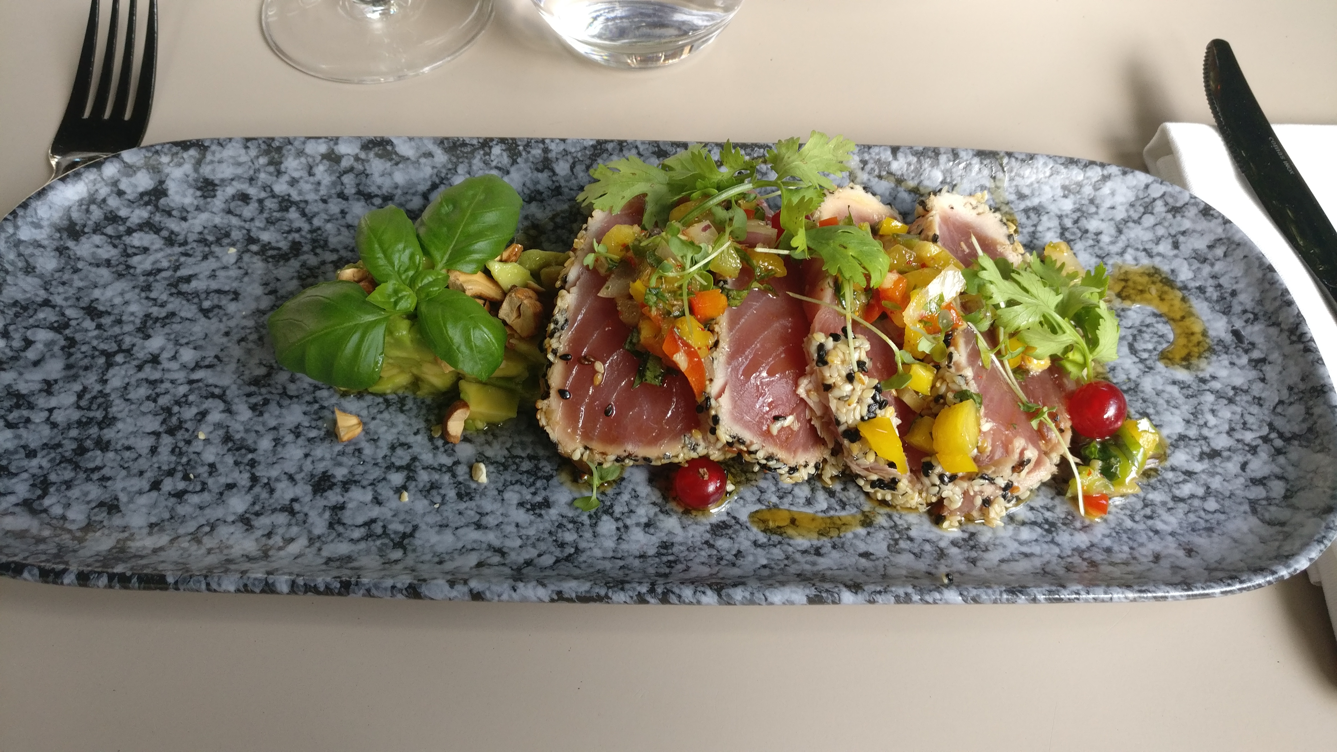 J'ai adoré. Les plats servis sont délicieux. Seul bémol, le service. En effet si les plats arrivent à bonne allure, demander des glaçons ou autre chose en dehors de la commande initiale met beaucoup de temps à arriver. Je recommande tout de même pour le cadre, la qualité des mets.