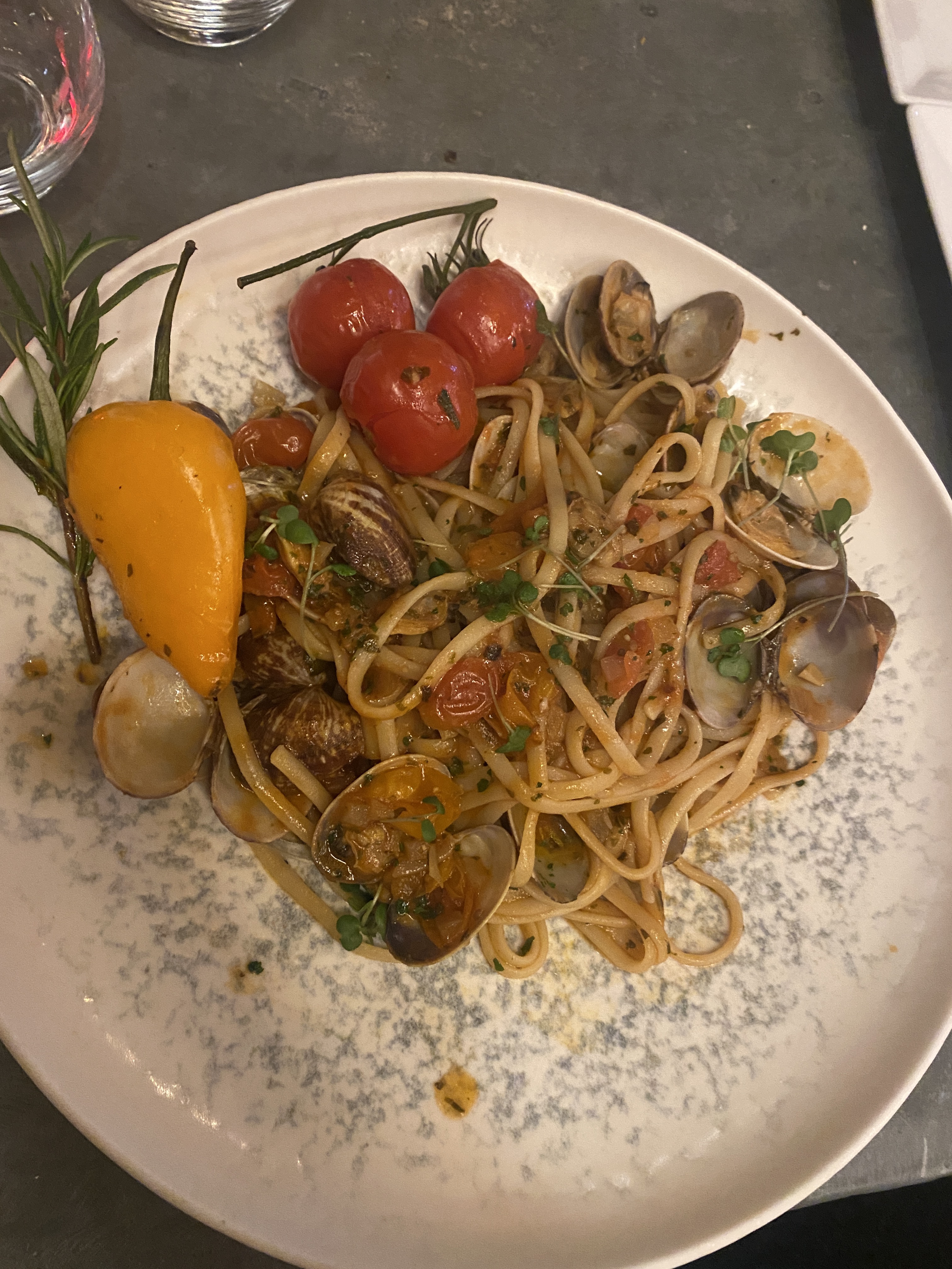 Franchement venu deux fois et deux fois déçu La premier fois l’année dernière une réservation pour une table de 20 personnes très mal reçu car il y a eu 4 chaise supplémentaire au dernier moment qu’ils n’ont pas voulu ajouter, et la réflexion sur le gâteau d’anniversaire apporté en voulant nous faire payer le « droit de bouchon » vous avez perdu ce soir là 24personne qui sont partis manger chez le conçurent a 2min à pied et bien mieux reçu . Et là deuxième fois ce jeudi pour faire plaisir à mes invités rebelote service très très long des tables on manger avant nous alors que nous étions premiers arrivés. 45min entre l’entrée et le plat principal. Demander de l’eau 3fois au serveur et voir les autres table servis … Pas de morrazela, pas de gnocchi, et deux plat de pâtes au palourde (mal laver ca croustillais sous la dent) à 38€ … heureusement qu’on n’a pas pris le burger a 42€ 😱 2 étoile pour la beauté du plat et le lieux mais plus jamais malheureusement . Je ne laisse jamais de mauvais avis mais là …