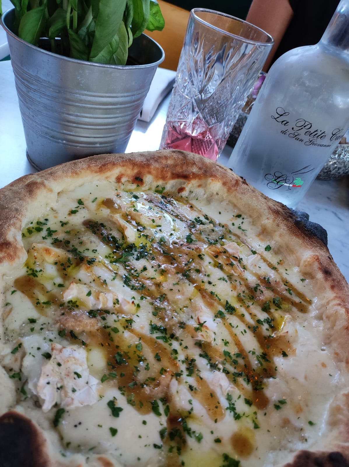 La cuisine est délicieuse. Le service laisse à désirer… même si les serveurs sont sympa ! J’ai demandé deux fois une bouteille d’eau que je n’ai pas eu, idem pour le dessert le pompon je demande une glace noisette, je goûte c’est du café. Je le signale à la serveuse qui ose me dire « j’ai demandé le café c’est comme la noisette » j’ai souri. Mon fils n’avait pas fini sa pizza à la truffe, il en restait la moitié, je demande un doggy bag. Une pizza à 32 € !!! Ce soir dans la boîte il y a un quart de cette pizza. Le pire mon fils me dit que ce n’est pas la sienne !!! Récupérée dans une autre assiette ???? Donc je vais jeter la pizza car je ne sais pas à qui elle appartient !!! Mon fils est très déçu !!! C’est honteux !!! Lorsque on a une carte aussi chère on a du personnel à la hauteur !!! Pas des personnes qui a 14 h débarrassent rapidement les tables non utilisées au lieu de s’occuper des clients correctement !!! À force votre restaurant ne fera plus salle comble je pense que c’est déjà le cas car c’était plutôt vide ce midi …. Je pensais revenir chez vous pour un anniversaire, j’irai ailleurs !!!