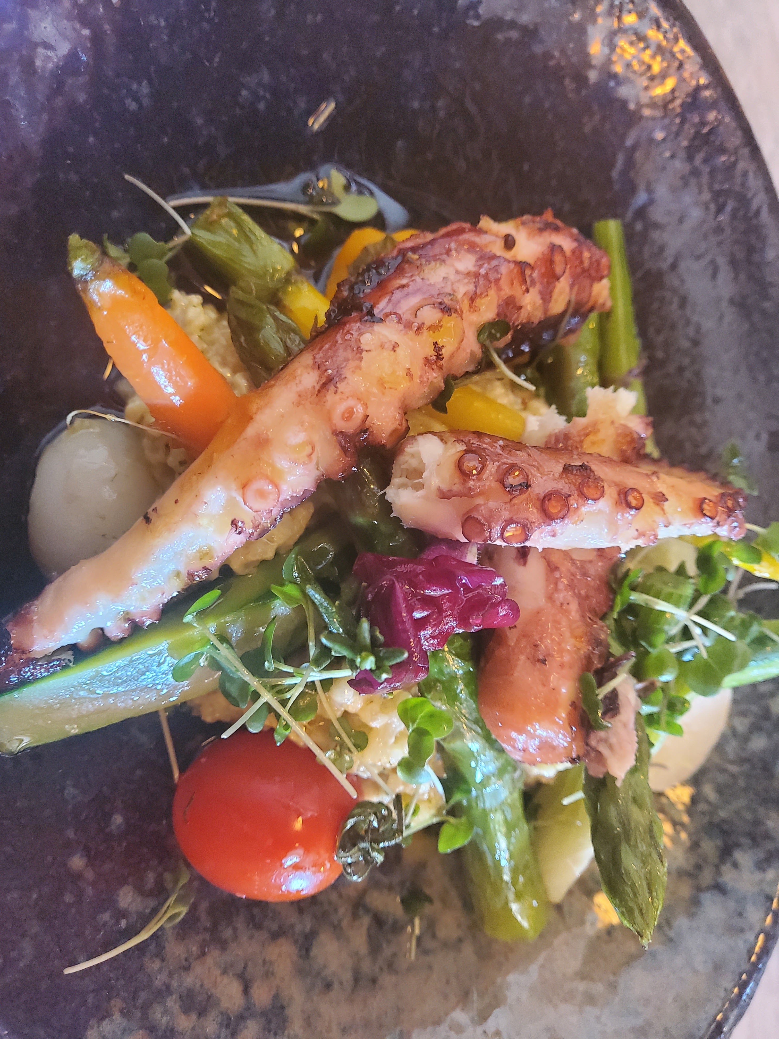 Délicieux et endroit très agréable Je vous conseille le poulpe grille un délice pour les yeux et les papilles !