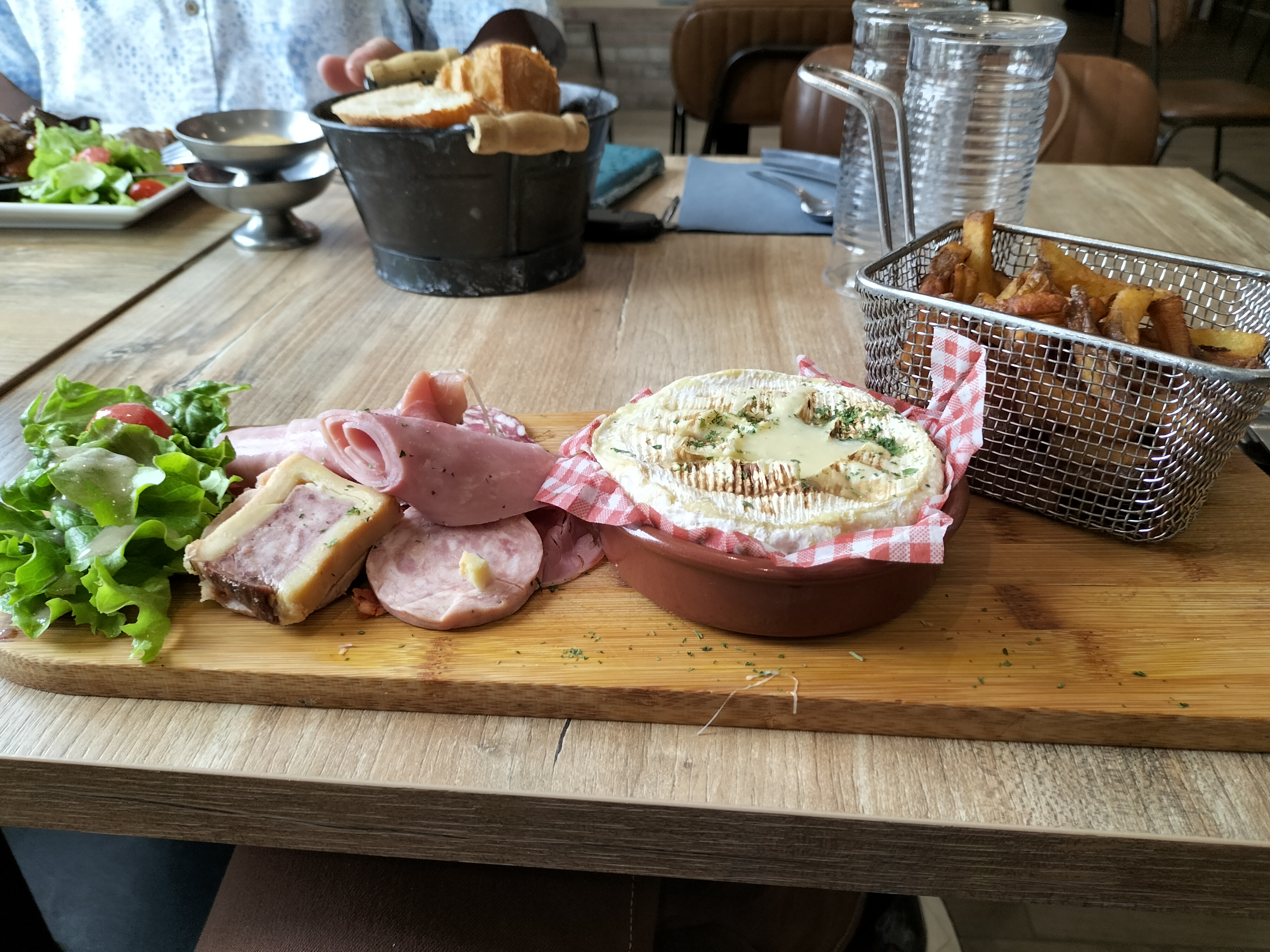 Une honte... A fuir ... Nous y sommes allés samedi soir avec mon conjoint .. Salle hyper bruyante .. Mon conjoint à commandé un camembert rôti, la serveuse nous annonce que ce sont des frites maison qui sont servies avec et que les plats sont copieux.. une fois le plat arrivé, mon conjoint se retrouve avec une assiette ou se trouve en garniture une demi pomme de terre à l eau avec un peu de salade .. génial quant on s'attendait à des frites maison .. heureusement qu il y avait du pain pour manger son camembert... ectivement si il avait su que l accompagnement été cela il n aurait pas pris ce plat ! Comme ils avaient énormément d attente, il nous offre une sangria (très bonne d ailleurs ), mon verre encore à moitié plein, la serveuse passe et me le ramasse .. je lui fait donc la réflexion et 5 mn après elle m en apporte un autre ! Les desserts arrivent .. Profiteroles pour mon conjoint , qu il n a même pas mangé tellement la glace été mauvaise ... une glace à la vanille pleine de colorant et d arôme de artificiels, quelle horreur. Pour moi c est un tiramisu, quelle surprise quant celui ci est arrivé avec des fruits et non avec la vrai recette traditionnelle .. pourquoi pas , je me lance et goûte.. celui ci été congelé , je ne l ai donc pas mangé ! Il serais bon sur la carte de mettre tiramisu aux fruits et non tiramisu tout court .. car ce n est pas la même chose ! Arriver au bar pour régler.. grand moment .. On nous demande si tout c est bien passé ... quelle bonne blague quant la personne est consciente du fiasco de son service ... Bien évidement je lui lui dit tout les déconvenues rencontrés durant notre repas !! Celle ci nous réponds on est désolé nous avons eu un souci de personnel , on avait le choix entre ouvrir et faire du mieux que l on pouvait , ou fermer ce soir ... on aurait fait mieux de fermer je pense Effectivement quant on sait qu'au niveau du service cela ne vas pas le faire, on ferme ... ou à un moment on stop les réservations ! Ça s appel de la logique ... Et puis quant on est un minima commerçant on fait un geste commercial pour faire digérer la pilule .. Des erreurs on en fait tous , mais la moindre des choses aurait été de faire un geste .. car beaucoup de personnes ont été déçu.. la table à coté de nous , les clients n ont même pas manger leurs hamburger qui leurs a été servie vers 22h alors qu ils étaient là depuis 20h30 !! Je ne vous recommanderai donc pas et ne ferait pas de bonne pub .. J aime pas l'etat d esprit , on ouvre pour faire de l argent au risque d'avoir des clients mécontents !!