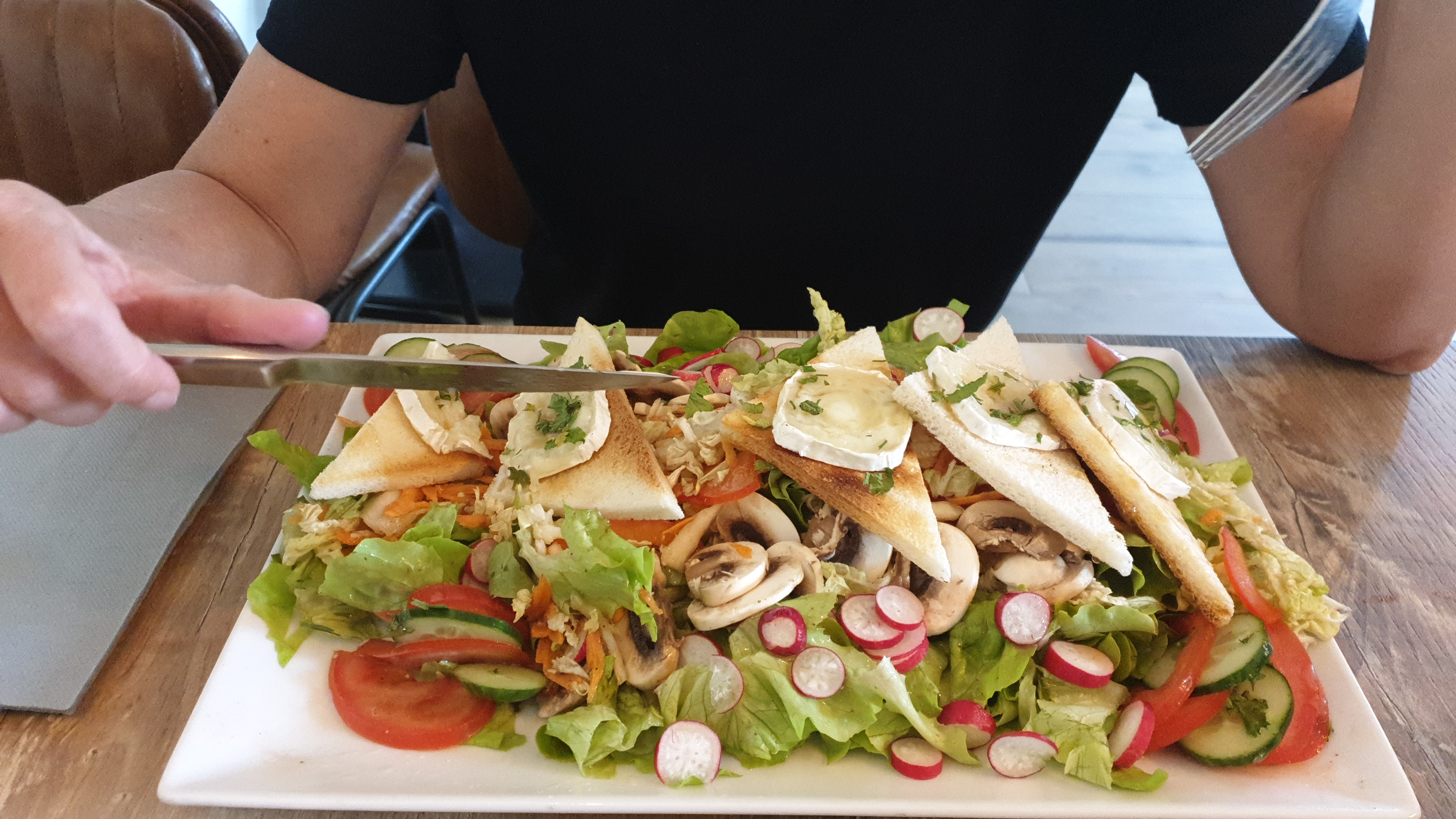 Un Snack Bar spacieux et agréable. Propre avec un bon service servant principalement des hamburgers, des wraps et des salades. J'ai été accueilli avec mon chien à midi et j'ai été le seul client pendant une demi-heure. Ce nombre est passé à une douzaine avant mon départ. Tout le monde semblait être au Menu du Jour 3 plats à 14,50 €. C'était joliment présenté et savoureux, même si les portions étaient petites et ne comprenaient pas de vin.