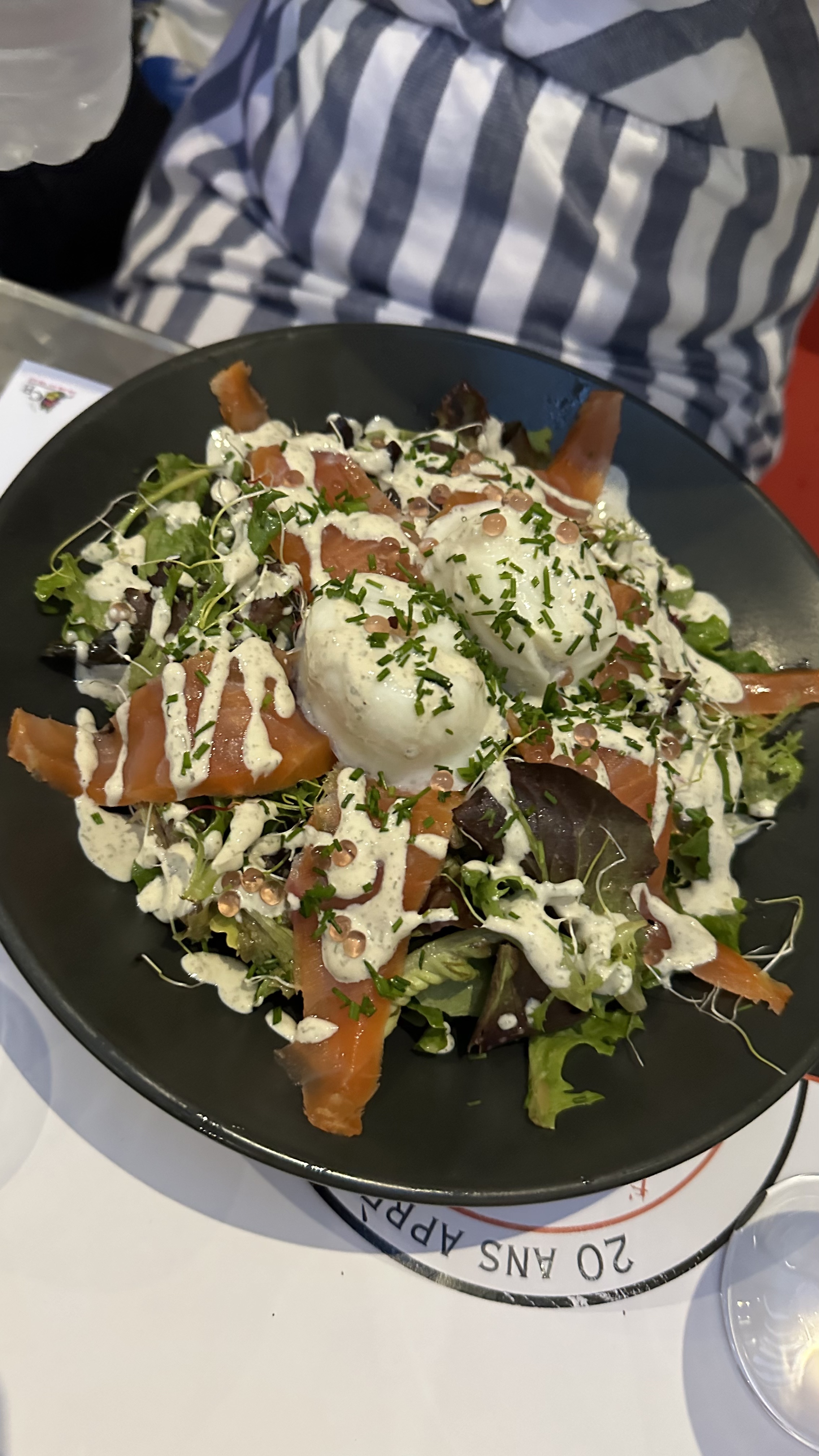 Accueil très chaleureux , ce fut un régale : le duo de poisson , le vin jusqu’au dessert 😌 je recommande vivement ! C’était un RÉGALE !