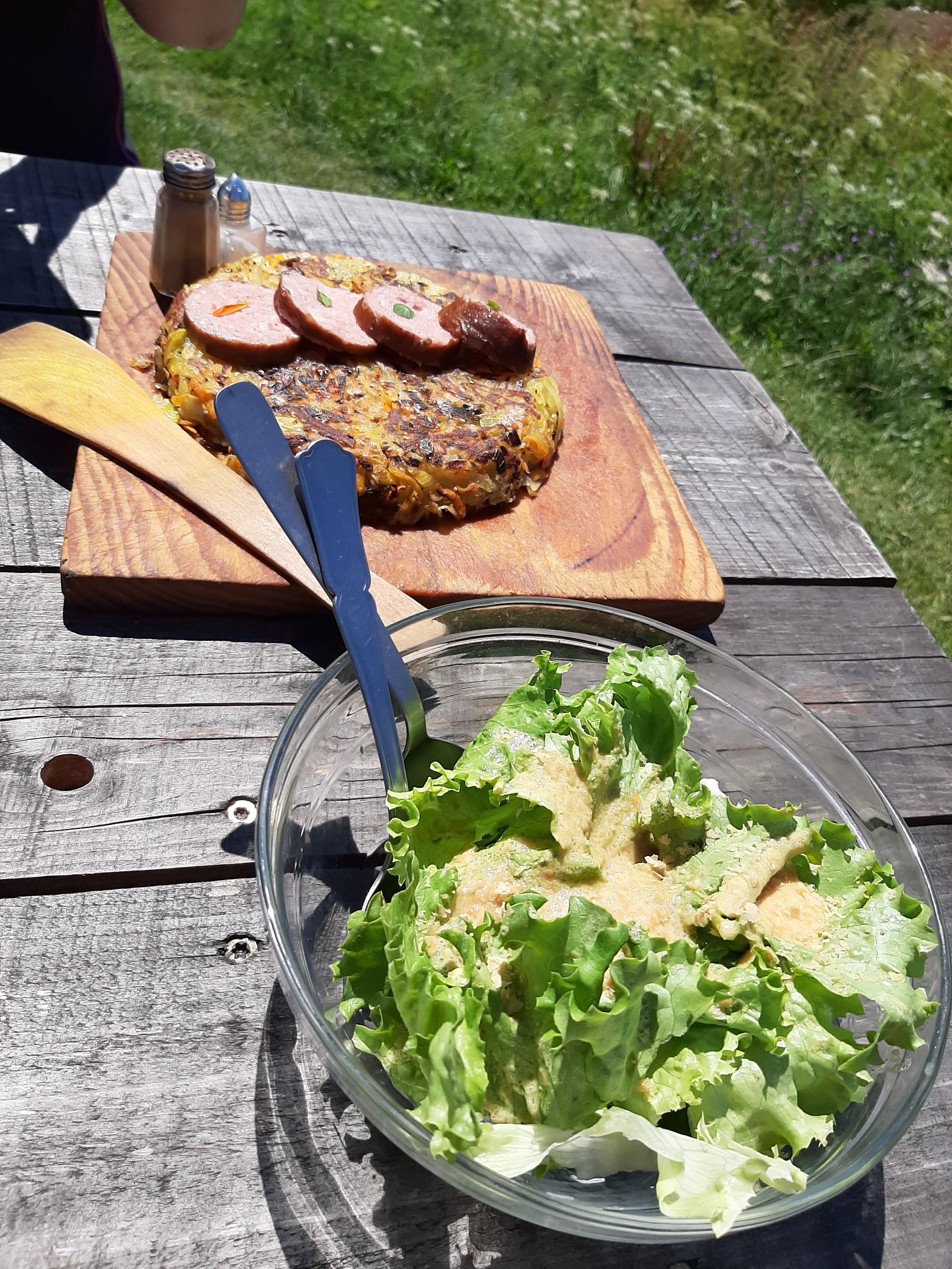 Rosti et fondue au top Belle soirée sur les tables en bois à l'extérieur au milieu des alpages À faire par fortes chaleur ou prendre la petite laine À re-découvrir en ski de fond cet hiver