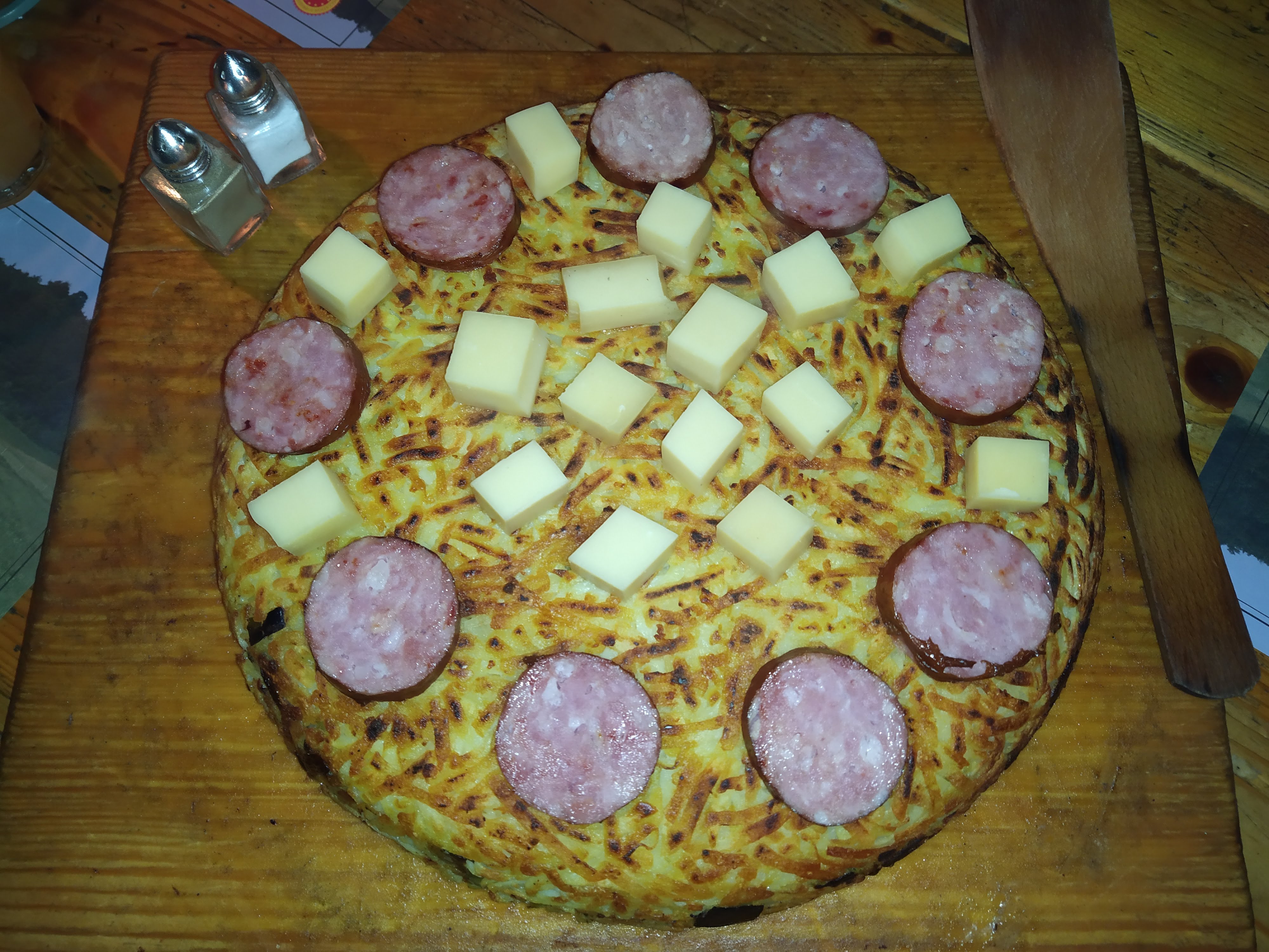 Petite update de la carte en photo, nous sommes arrivés, et après avoir attendu 10 minutes à notre table, un serveur nous a apporté la carte, en nous forçant à moitié à prendre des rosties ( ce que nous ne voulions pas forcément). La cuisine est bonne, pas excellente, pas non plus décevante, mais il faut sérieusement revoir vos prix qui s’apparentent à du vol !!! Nous avons payé 100 EUROS pour une grosse tortilla, qui plus est au légumes et sans les lardons affichés sur la carte ! Je ne blâme pas le jeune serveur qui était très gentil avec nous, mais les propriétaires qui prennent en otages les clients qui arrivent ici.