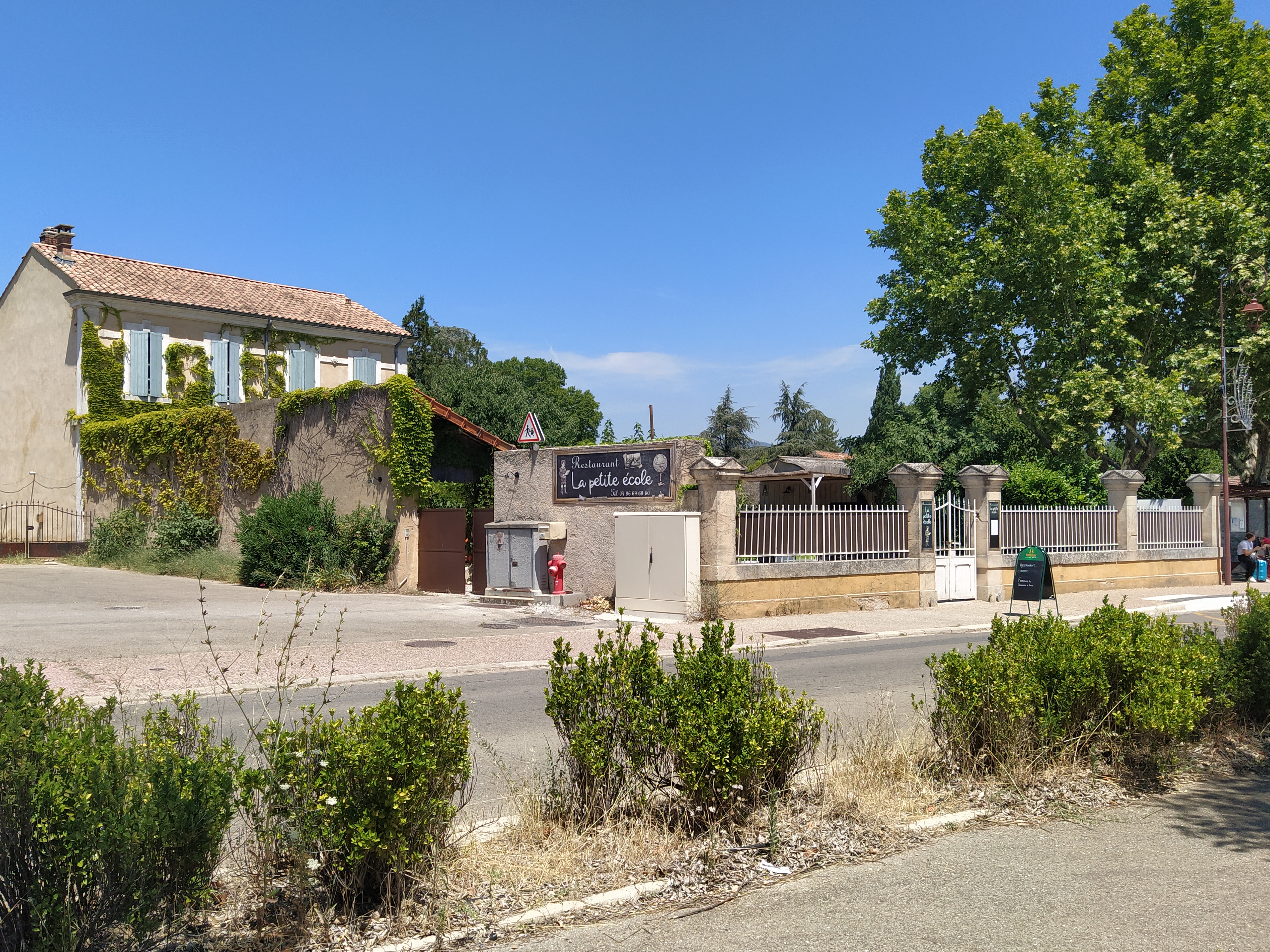 Nous avons déjeuné ici un dimanche de juin, en nous arrêtant par hasard. La gérante nous a expliqué, à notre demande, l'histoire de la petite école, nourriture de bonne qualité en compagnie du petit Mistral (un adorable chien local)
