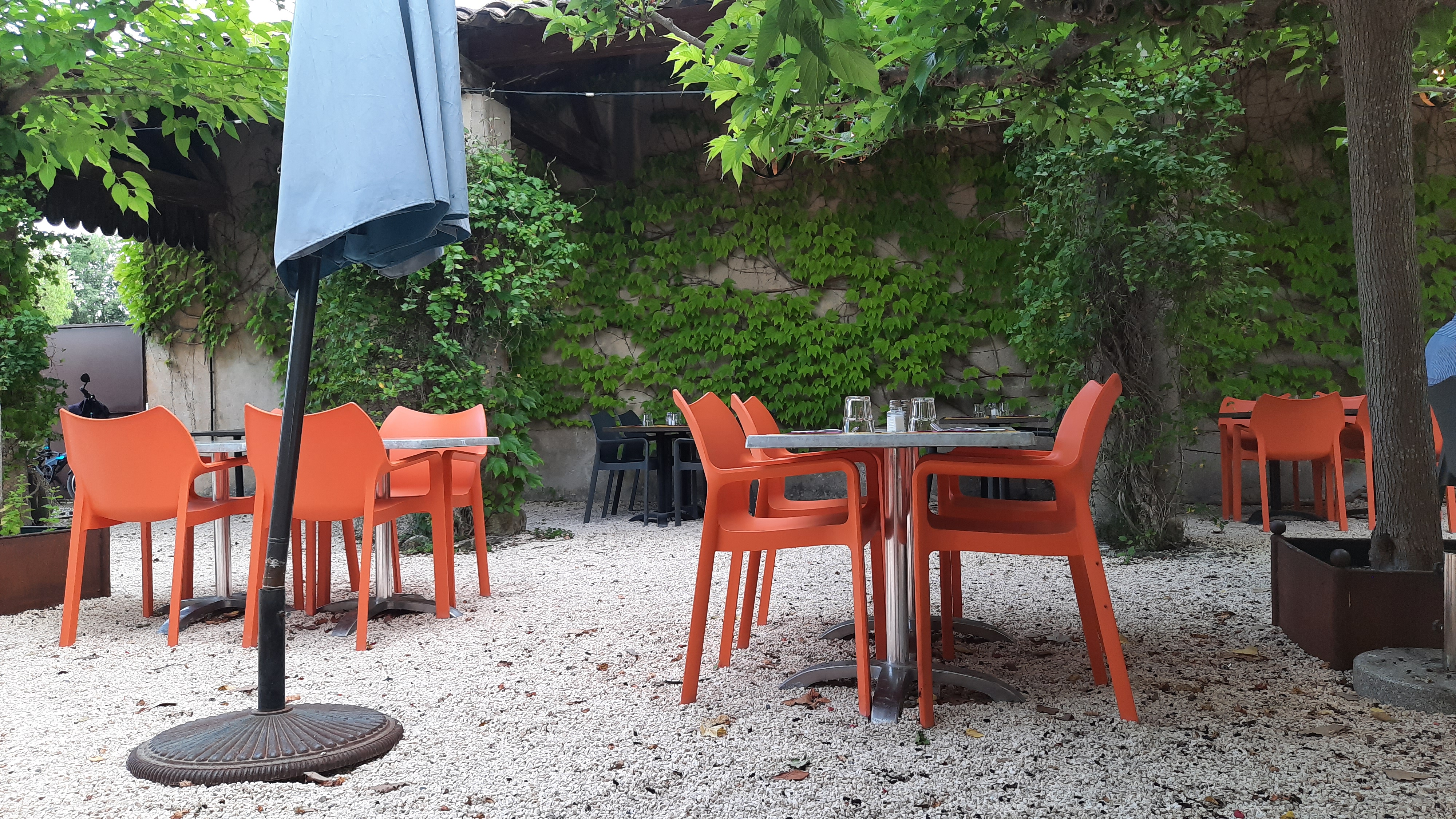 Restaurant très agréable, ombragé,bonheur de profiter de l'extérieur.Excellente cuisine service impeccable.