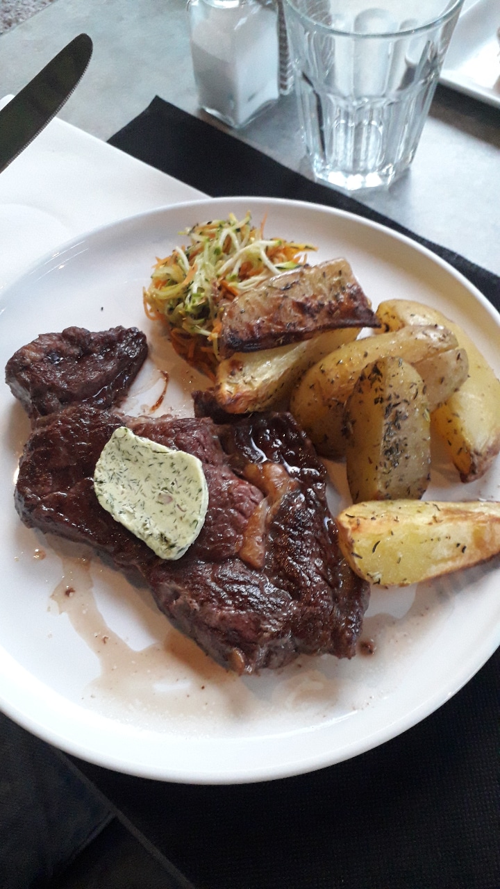 Situé dans une vielle école, l'endroit est très agréable et tranquille. Faute d'entrecôte on a eu le droit à un faux filet très bien cuit. Et la tarte au chocolat... trop bonne.