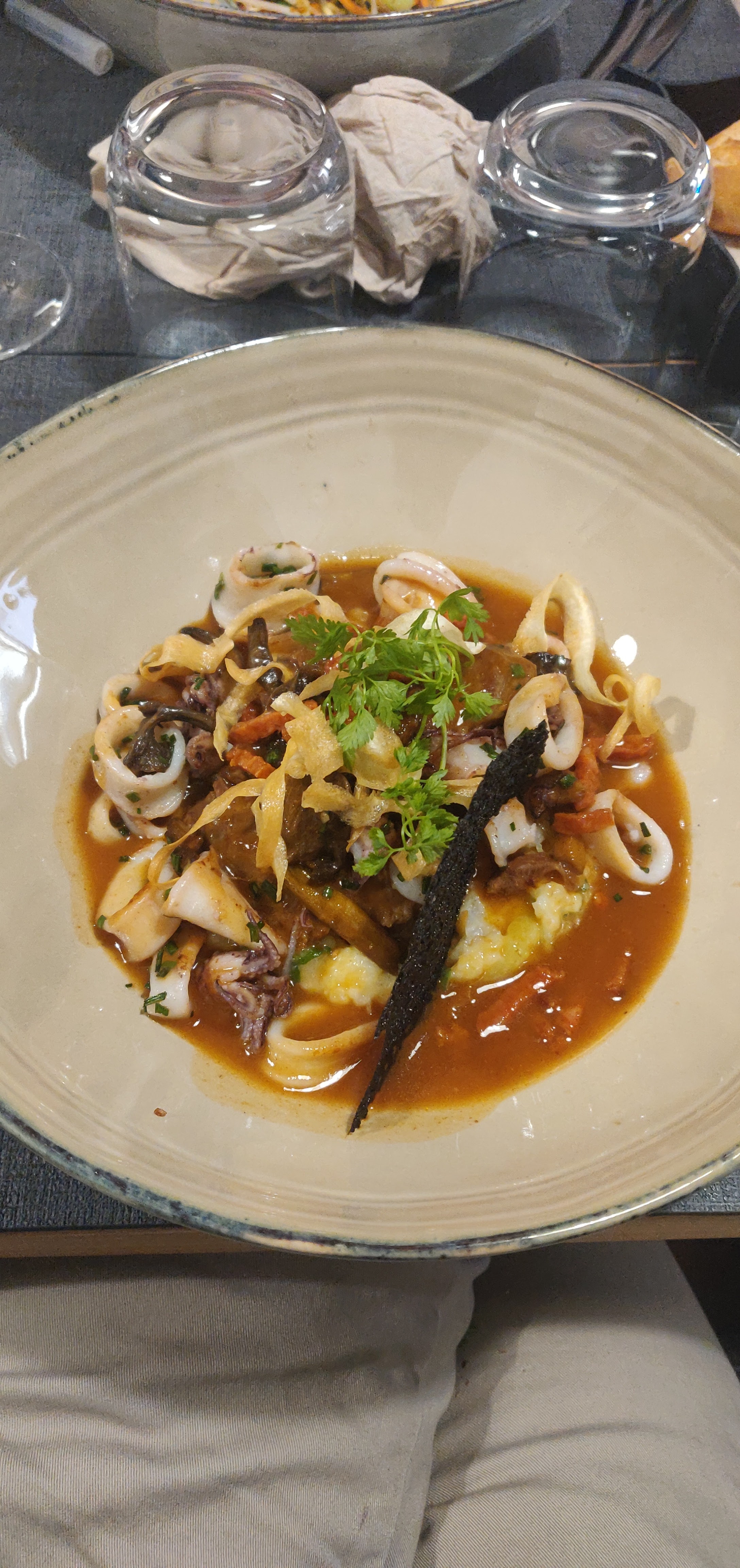 Nous avons vu 5 étoiles sur tripadvisor et nous pensions que cela était impossible… Plus que possible ! Nous mettons que très rarement des avis sur Google, mais c’était tellement parfait! Plats très travaillés, nous avons découverts des saveurs qui jusque là étaient inconnues à nos papilles, les assiettes si bien présentées, et les quantités copieuses, le service était très agréable, nous garderons un super souvenir de cette soirée d’anniversaire ! Merci encore ! (En photo entrée et plat)