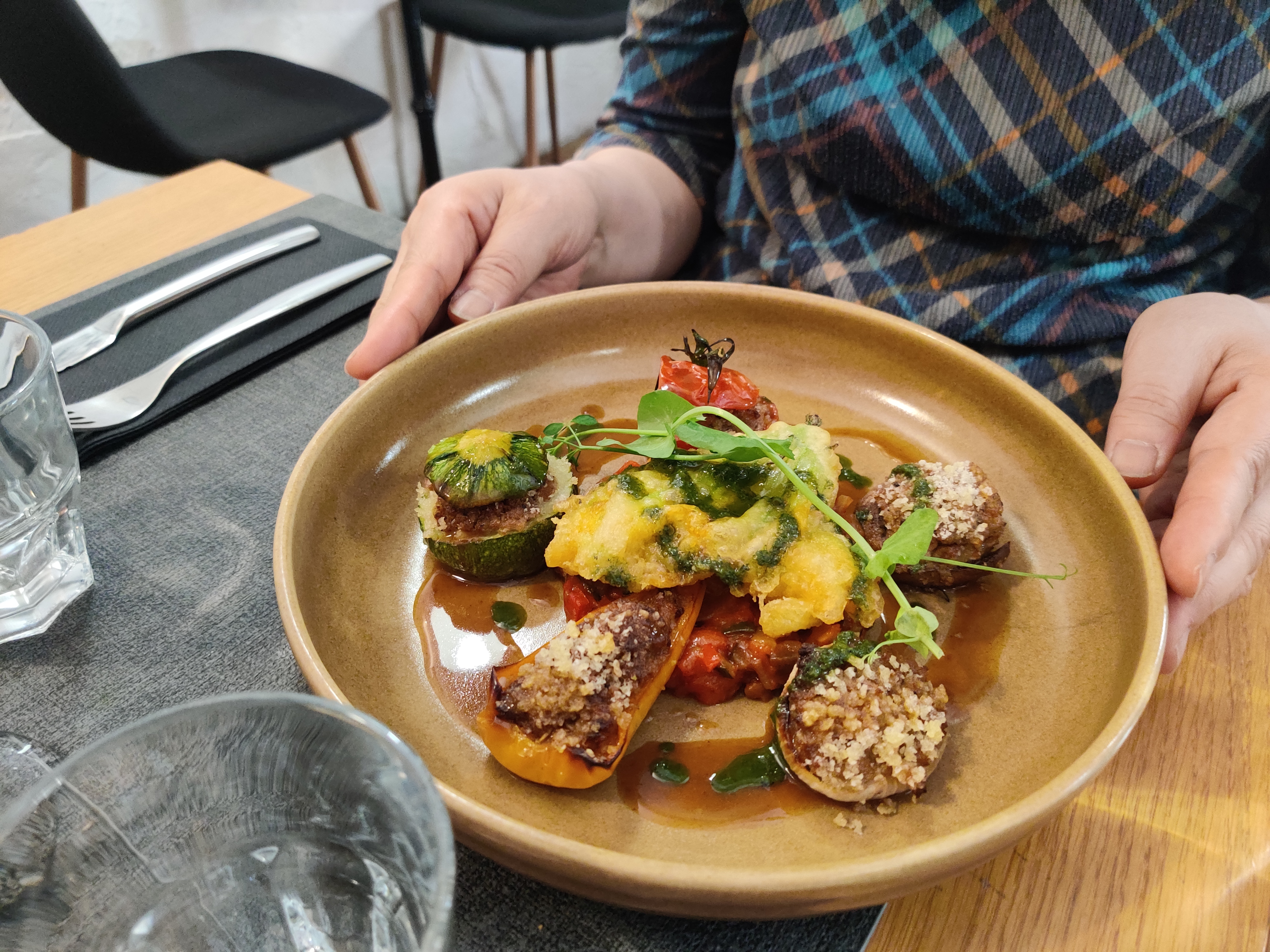 La meilleure Salade Thaï que j'ai jamais mangée (et je l'adore et j'en ai eu beaucoup...) en entrée et que la triple la plus connue de la région : les petits farçis & ratatouille & beignets de fleur de courgette. C'est plus que ce à quoi vous pouvez vous attendre. Et l'accueil chaleureux d'Hannah et Vincent dans ce restaurant cosy d'Antibes est à voir absolument !