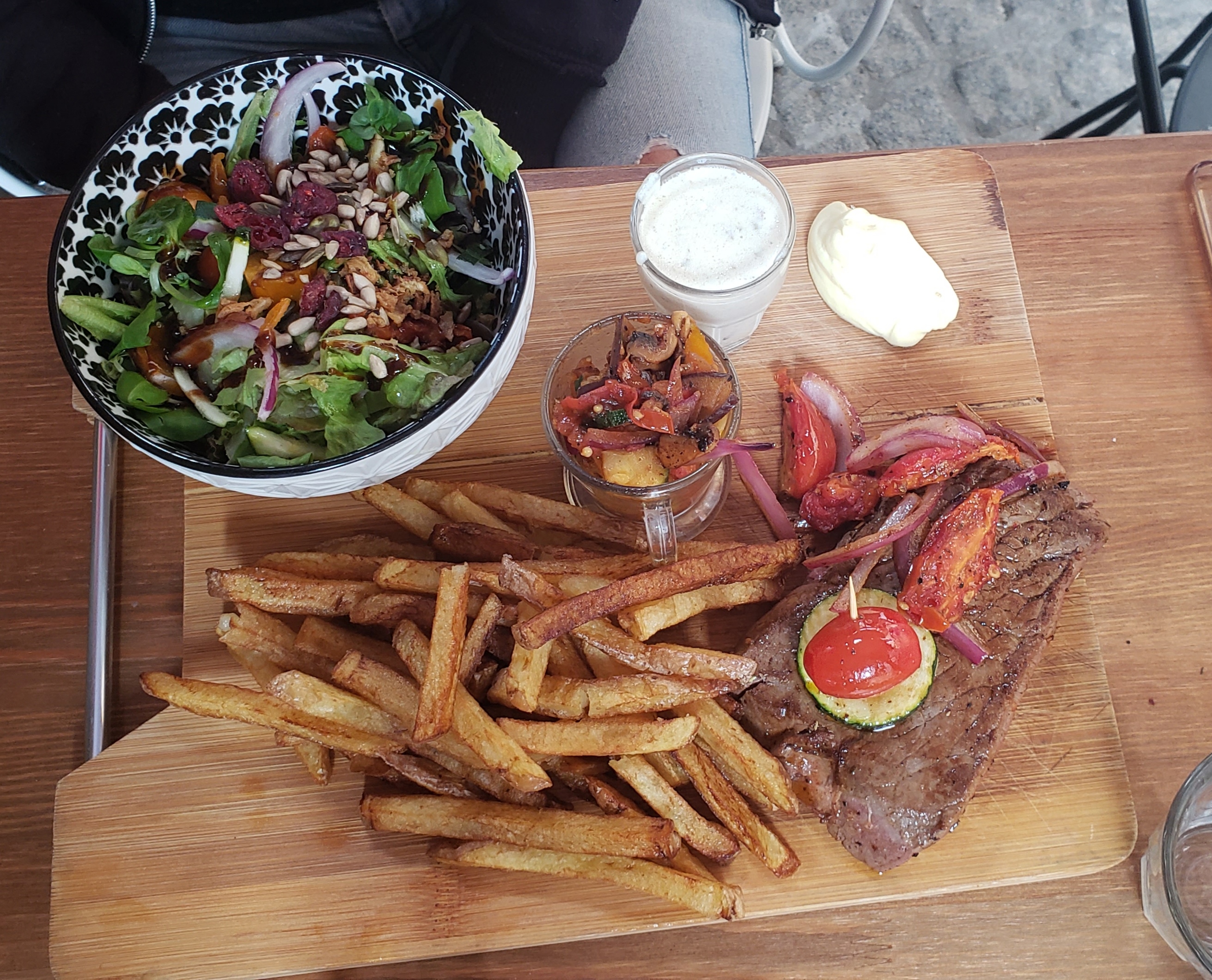 De vrais bons plats maison, copieux, originaux et frais. Un décor atypique au milieu de la rue piétonne. Un service excellent, sourires, conseils et disponibilité. Un grand merci, on reviendra.